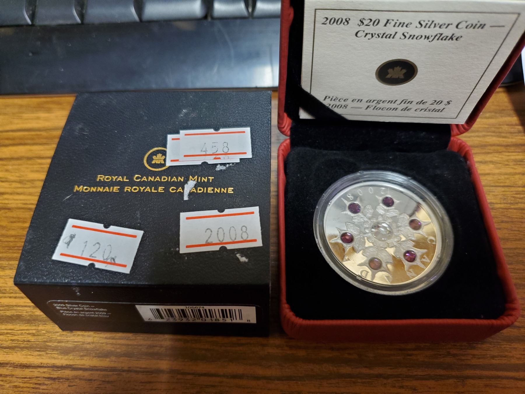 2008 $20 FINE SILVER COIN 'AMETHYST CRYSTAL SNOWFLAKE'