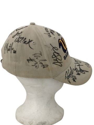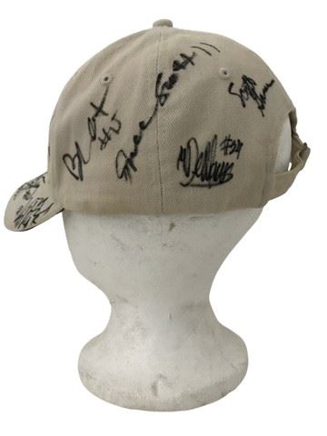 2008-2009 UCLA basketball team signed off-white with black and gold embroidered lettering “UCLA basketball” baseball hat.
