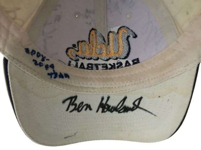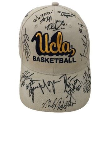 2008-2009 UCLA basketball team signed off-white with black and gold embroidered lettering “UCLA basketball” baseball hat.