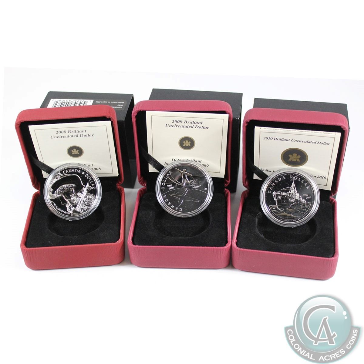 2008-2010 Canada Brilliant Uncirculated Dollar Collection. You will receive each coin released between 2008 and 2010. 3pcs.