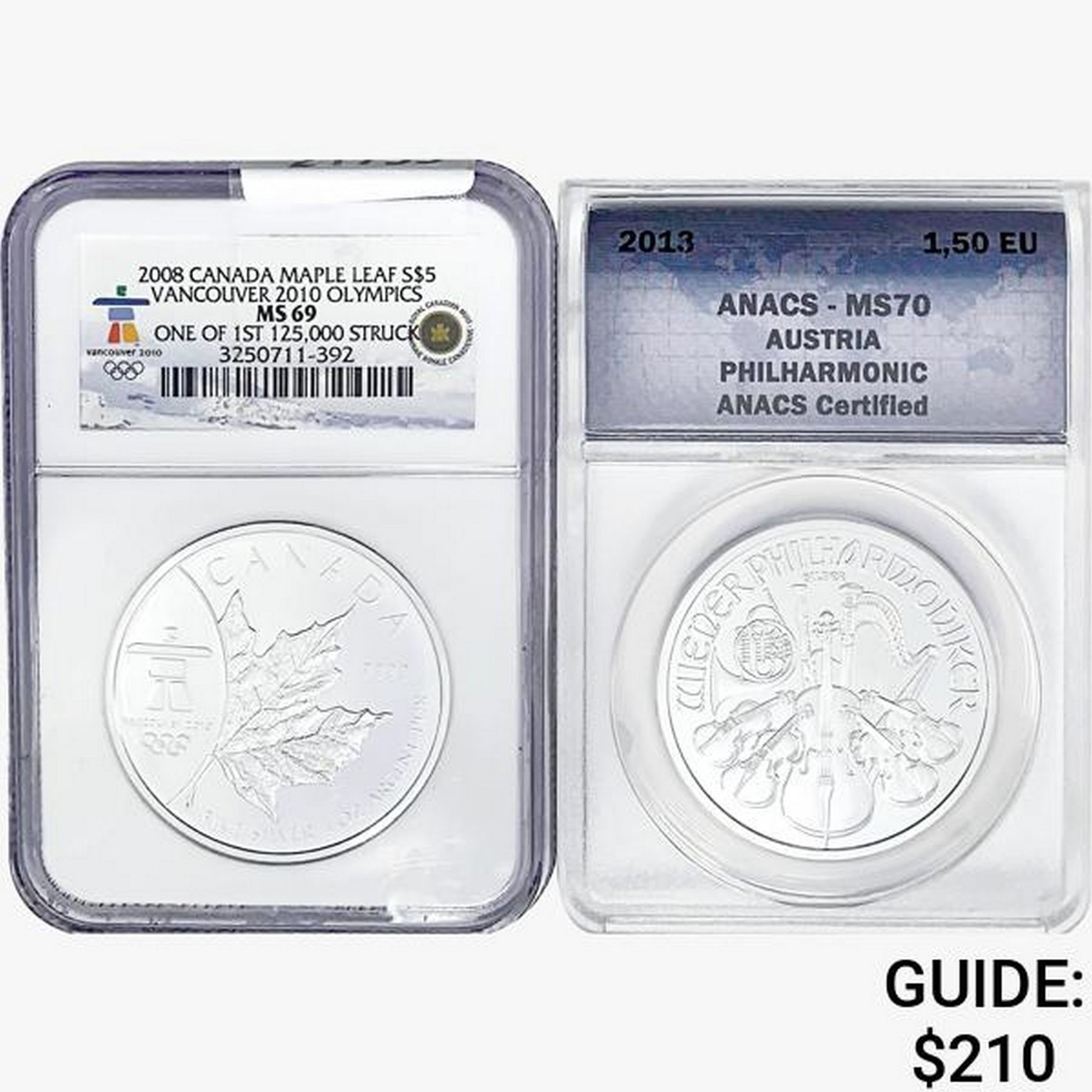 2008&2013 [2] Silver Coinage ANACS/NGC MS69/70