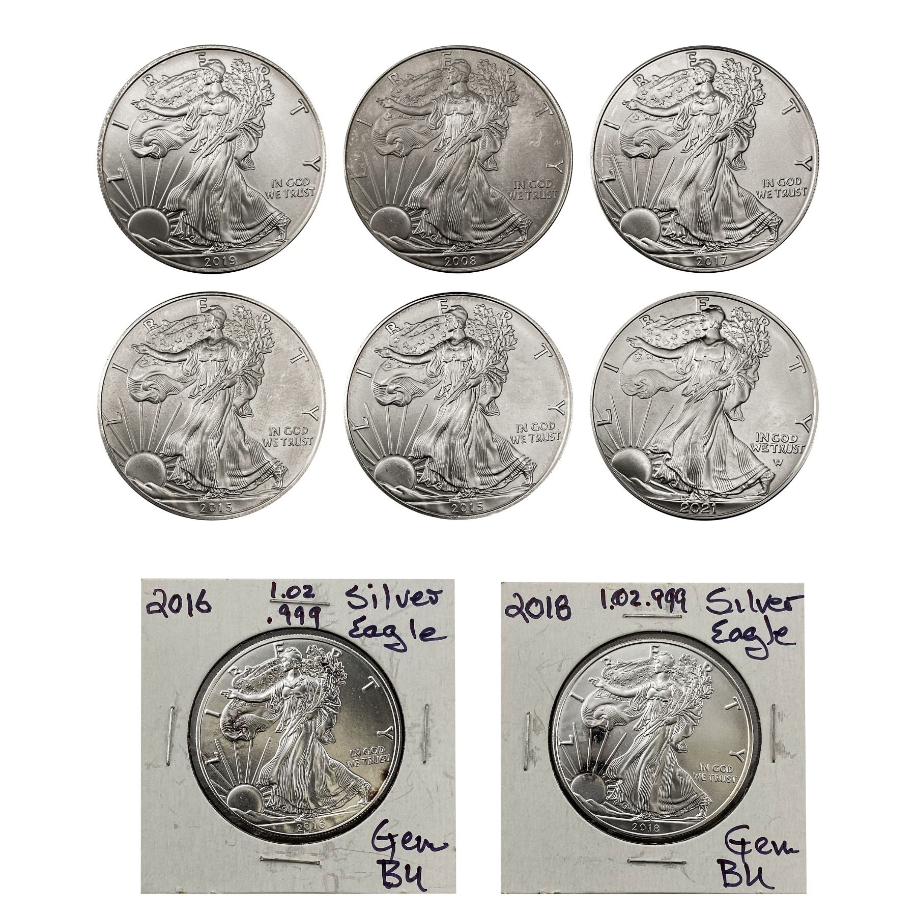 2008-2021 GEM BU American Silver Eagle Lot [8 Coins]