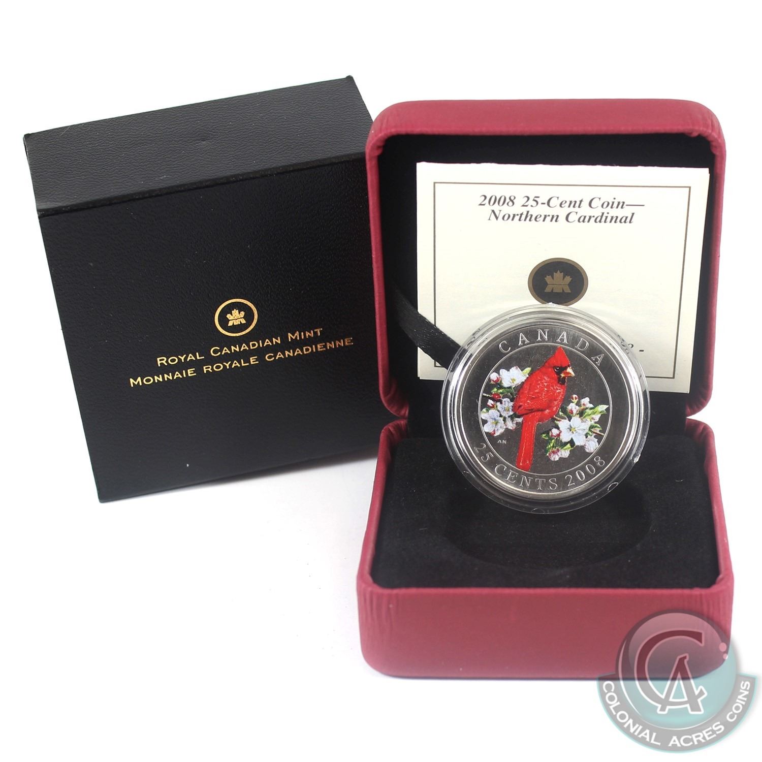 2008 25-cent Birds of Canada - Northern Cardinal (Black marks on obvserse).