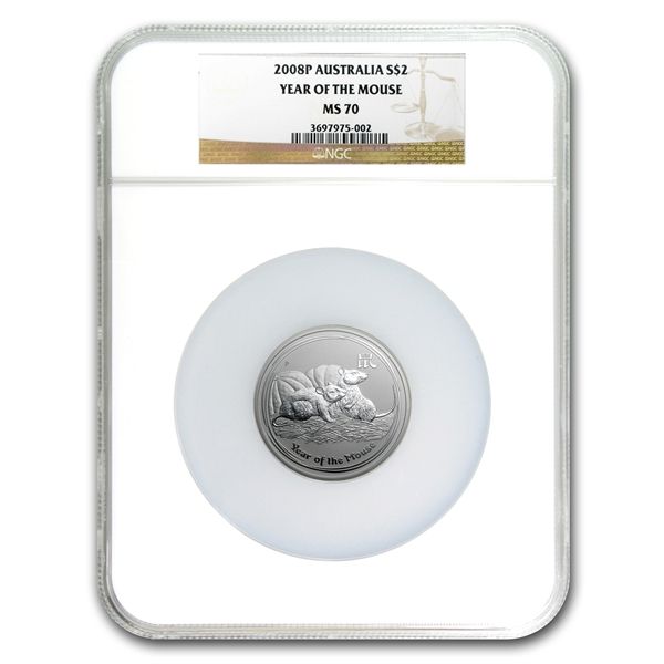 2008 2oz Silver Australian Year of the Mouse Coin (SII) **|**|** 2008 2oz Silver Australian Year of the Mouse Coin (SII) NGC MS-70 ; MSRP: $1200
