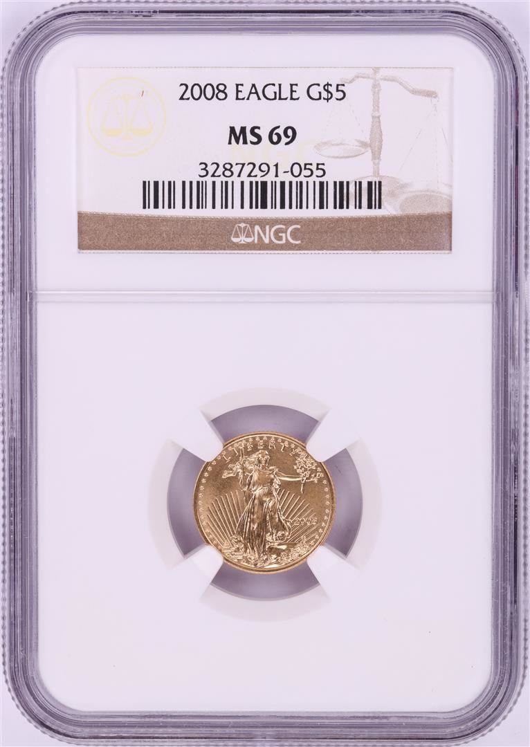 One 2008 $5 American Gold Eagle Coin NGC MS69. NGC Certified.