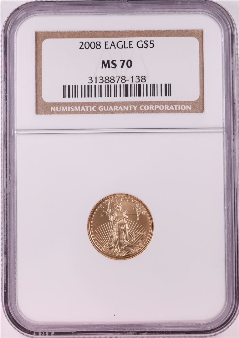 One 2008 $5 American Gold Eagle Coin NGC MS70. NGC Certified.