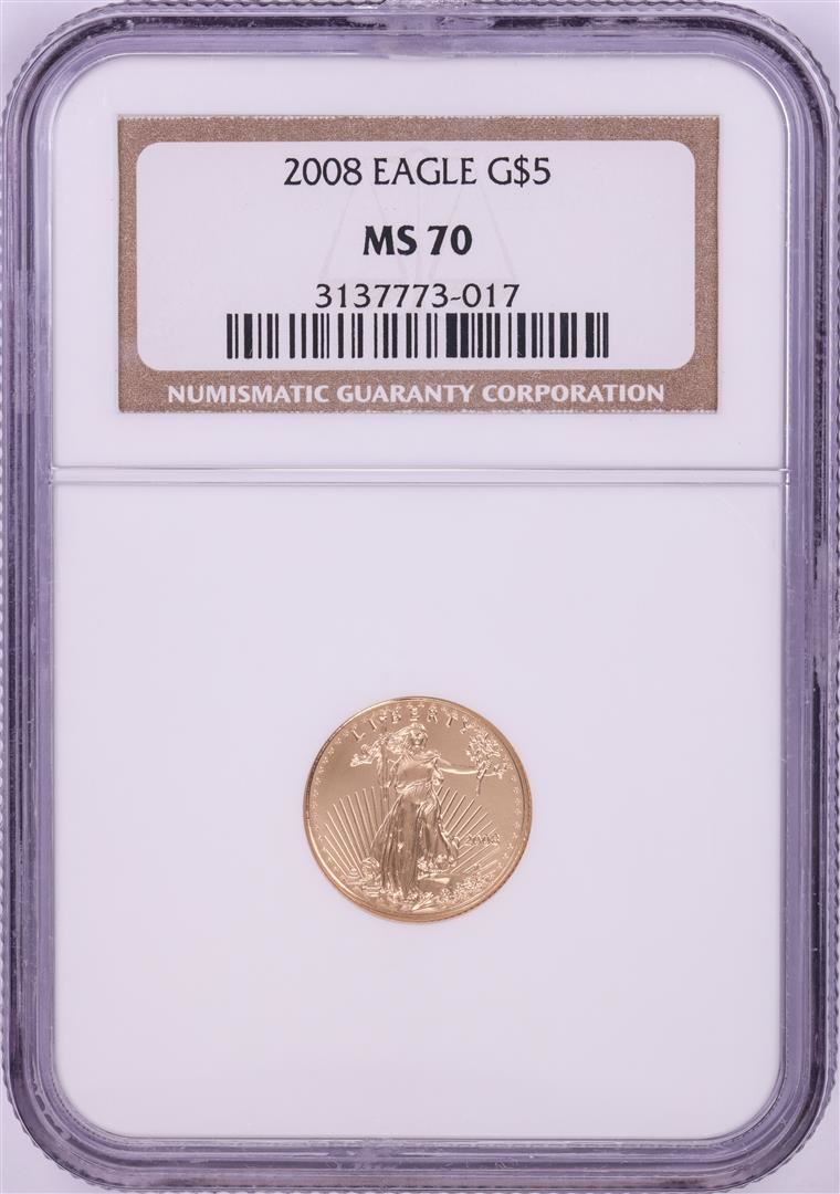 One 2008 $5 American Gold Eagle Coin NGC MS70. NGC Certified.