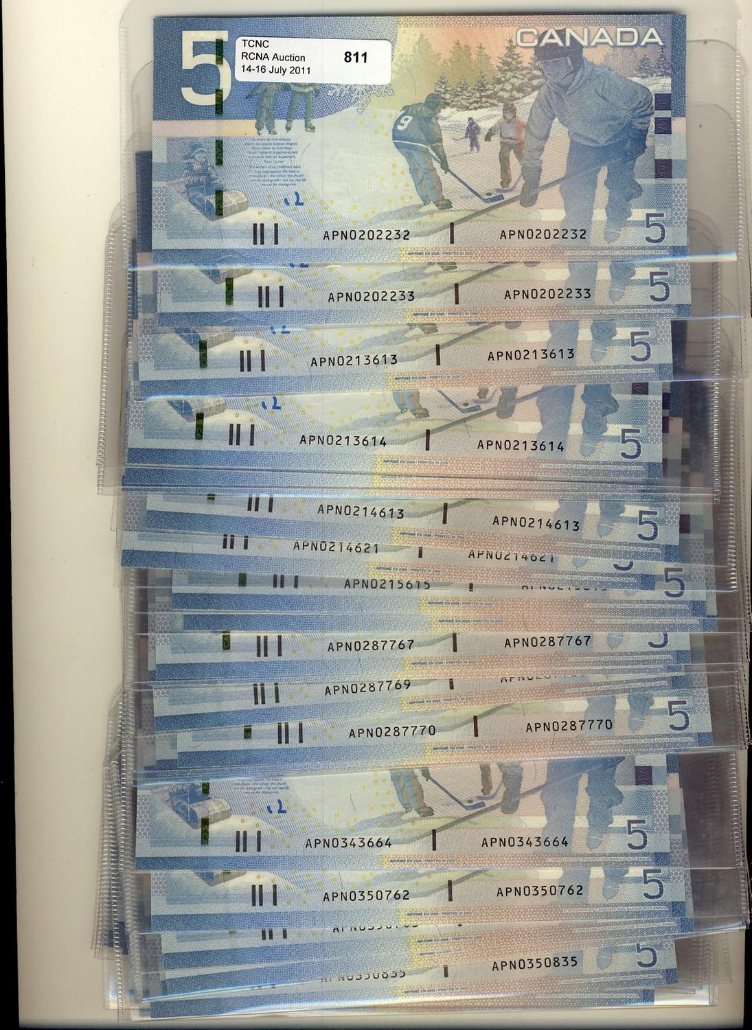 2008 $5 BC-67bA #APN between ,040-0,360M Sheet replacement issues. Lot of 31 Choice UNC notes.