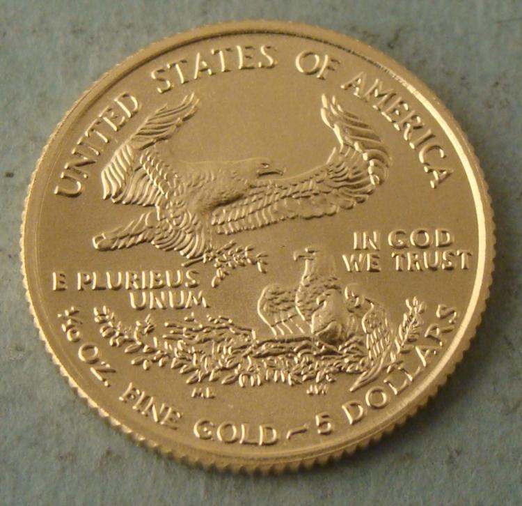 2008 $5 Gold Eagle Coin * Content: 1/10th oz gold Diameter: 16.5 mm Condition: Uncirculated