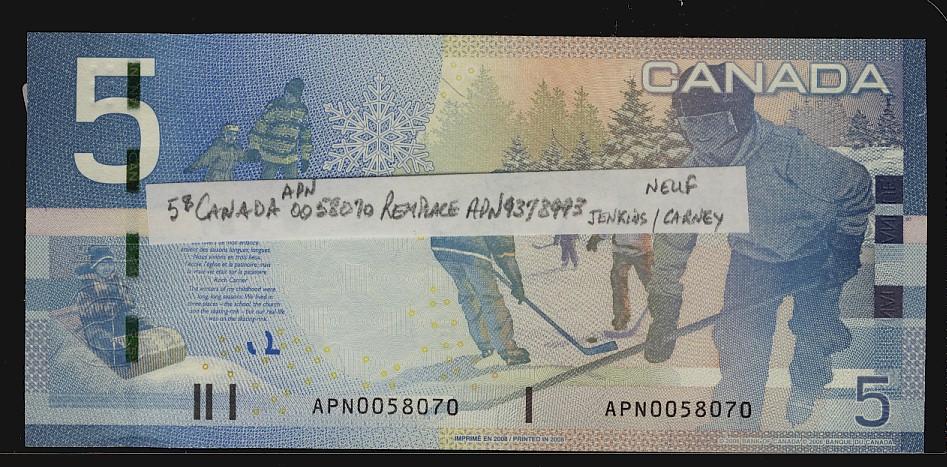 2008 $5 Insert notes #APN0058070 which replaces APN9378993. Gem UNC.