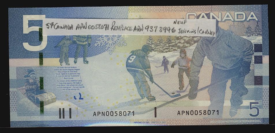 2008 $5 Insert notes #APN0058071 which replaces APN9378996. Gem UNC.