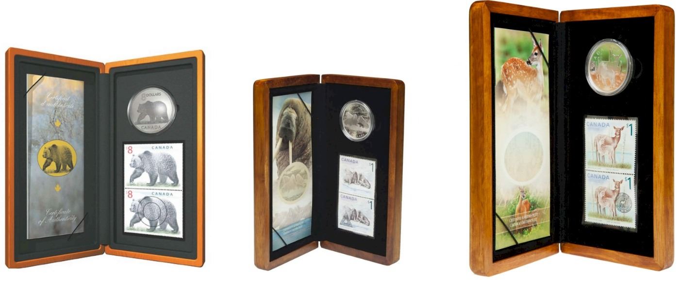 2008 $8 Sterling Silver Great Grizzly, 2005 $5 White-Tailed Deer&Fawn, and 2005 $5 The Atlantic Walr