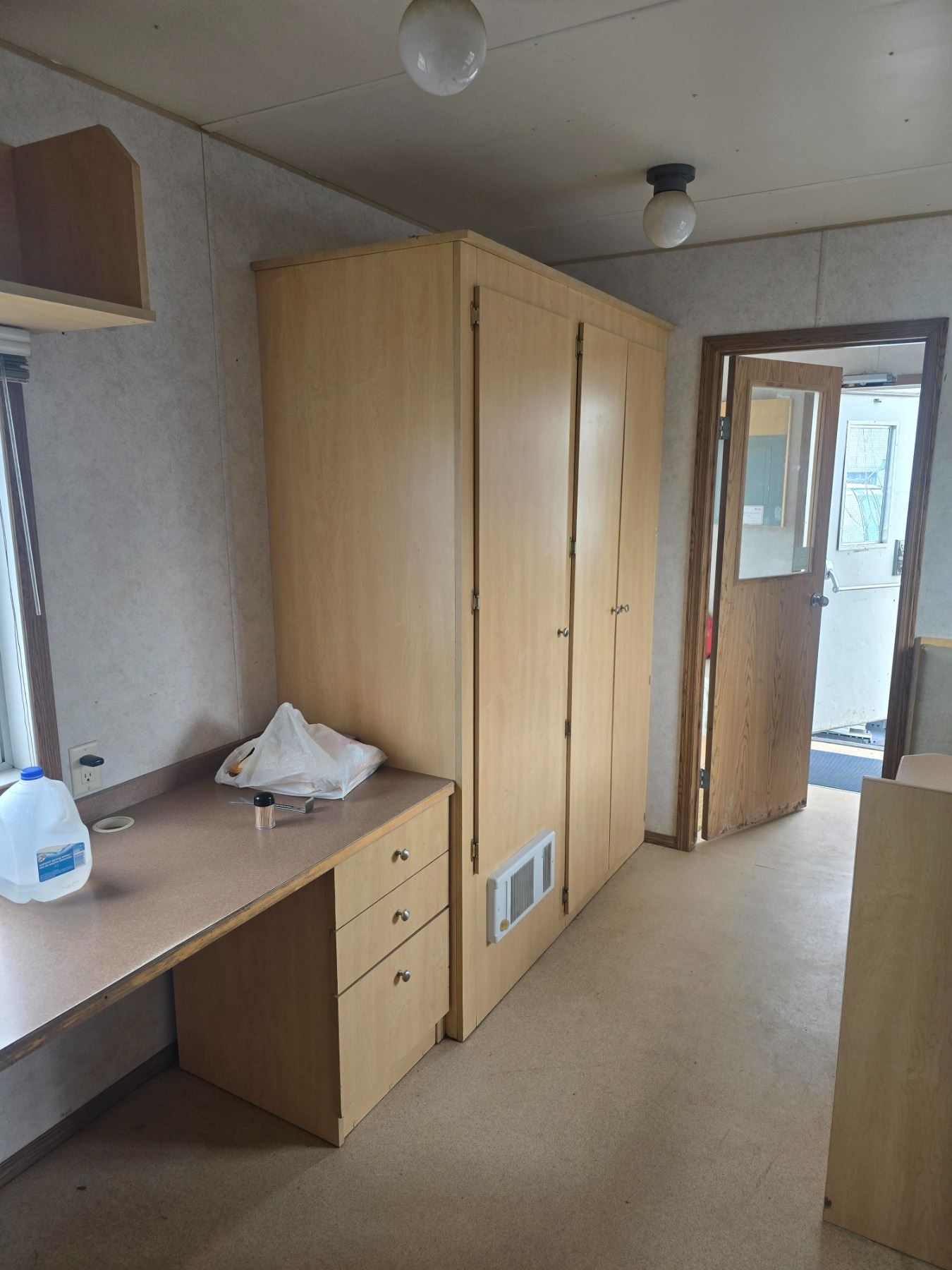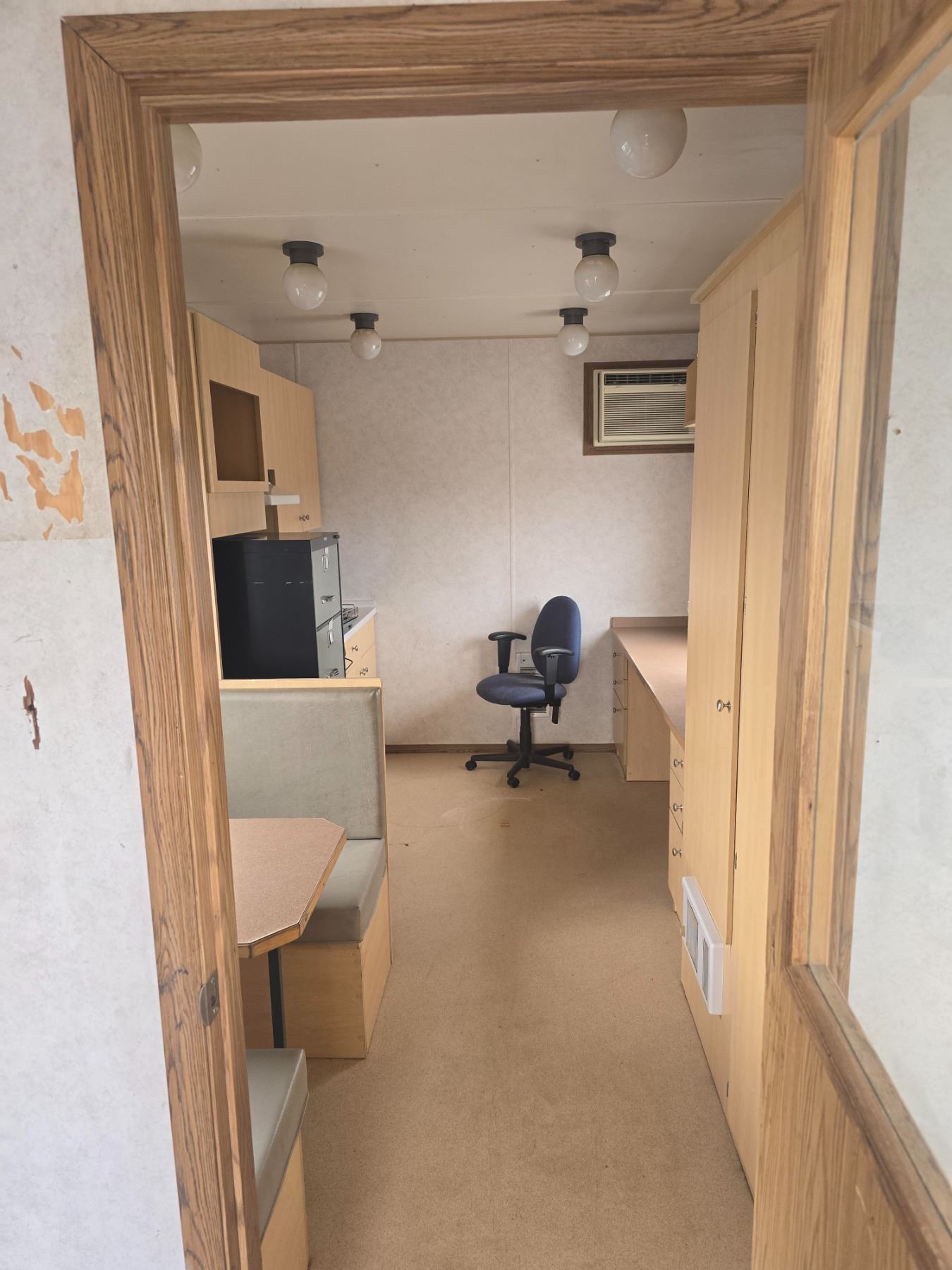 BUILDING, WITH AC, DESK AREA, EATING AREA, FILE CABINET, GAS TOP STOVE, 2 PROPANE BOTTLES, SINK, CLOSET, HEATER, ETC. MUST BE REMOVED BY WEDNESDAY 5PM (LOCATED OFFSITE 2 BLOCKS FROM KASTNER AUCTIONS) **ALL ITEMS MUST BE REMOVED BY 5PM SATURDAY, JULY 5TH 2025. ALL REMAINING ITEMS WILL BE SUBJECT TO A $6.00 PER DAY STORAGE CHARGE. ANY ITEMS REMAINING AFTER MONDAY, JULY 21ST 2025 WILL BE CONSIDERED FORFEITED. NO REFUNDS WILL BE ISSUED FOR FORFEITED ITEMS. TO SCHEDULE A PICK UP APPOINTMENT CLICK HERE