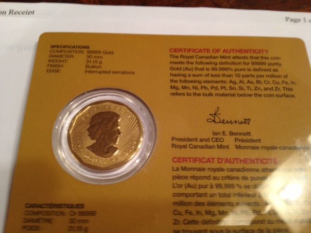 2008 .99999 PURE GOLD 1 OZ MAPLE LEAF