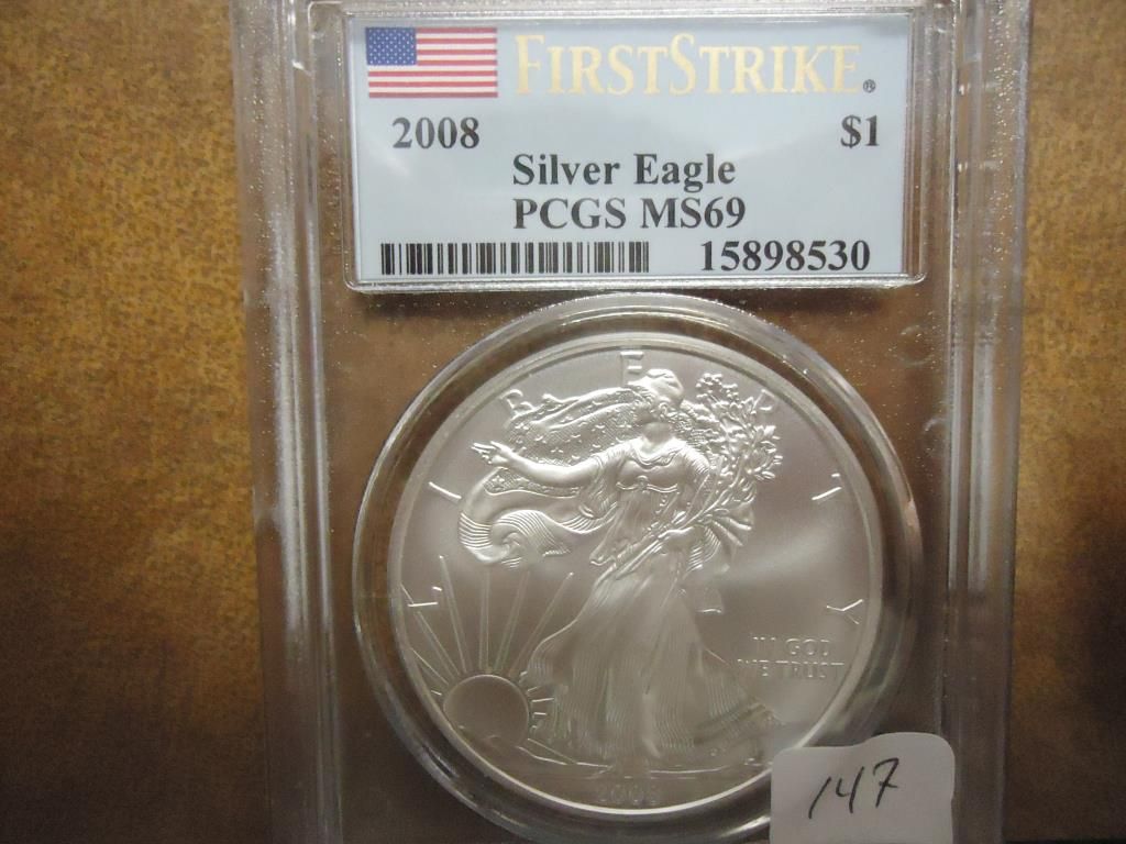 2008 AMERICAN SILVER EAGLE PCGS MS69 1ST STRIKE