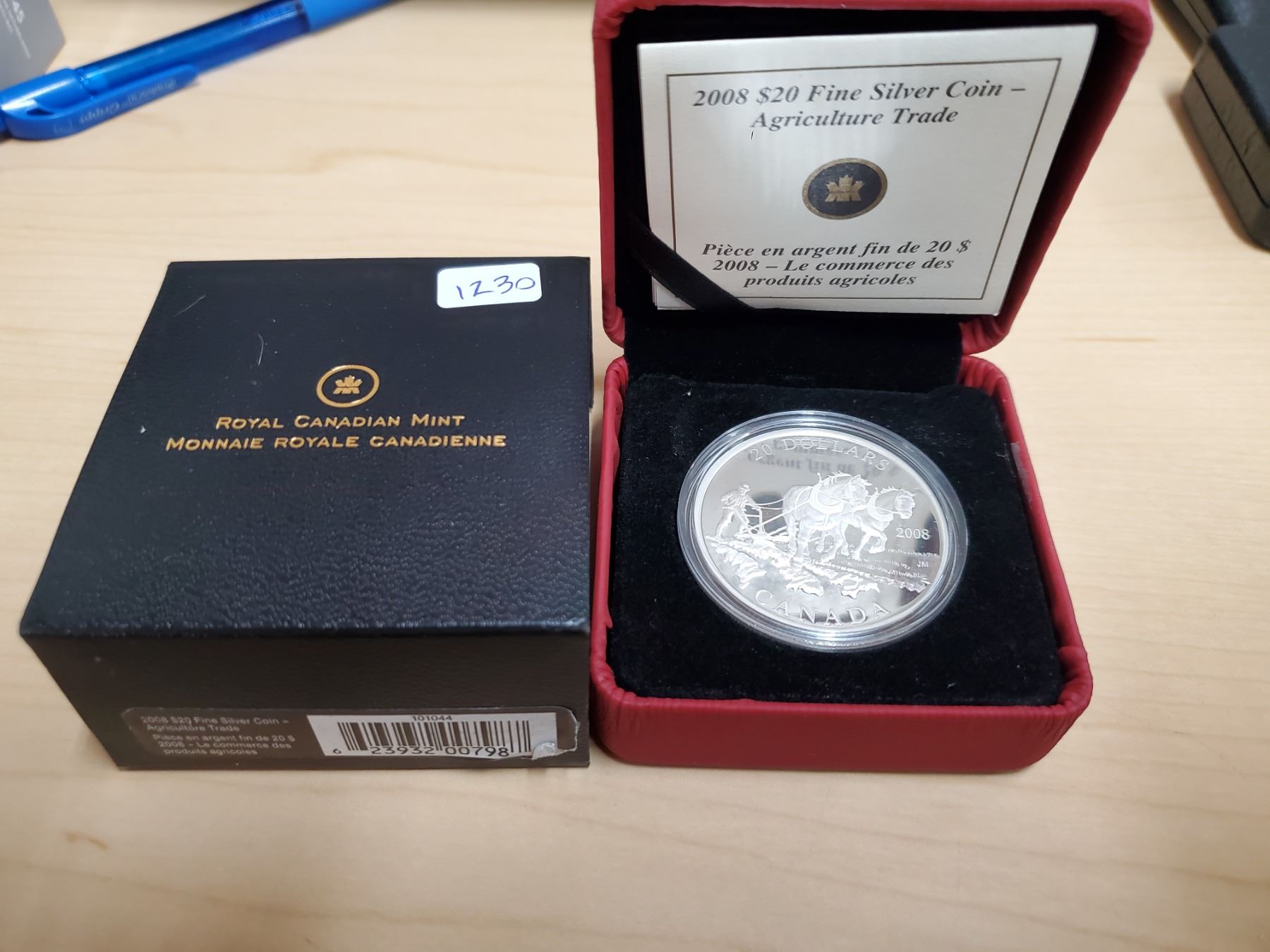 2008 Agriculture & Trade $20. 99.99% pure Silver. Proof with Ultra Heavy Cameo. Housed in its original case & box of issue.