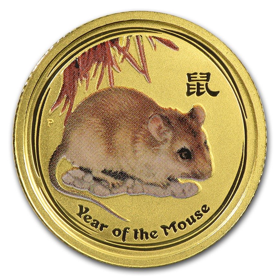 2008 Australia 1/10 oz Gold Lunar Mouse BU (SII, Colorized)