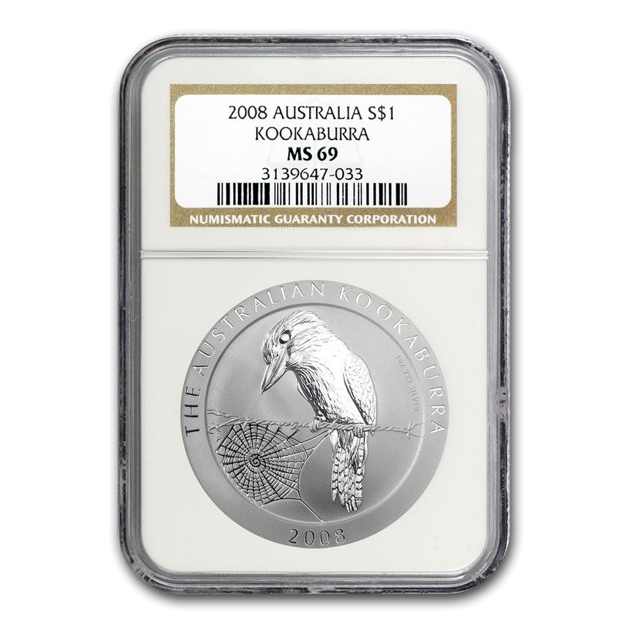 2008 Australia 1 oz Silver Kookaburra MS-69 NGC