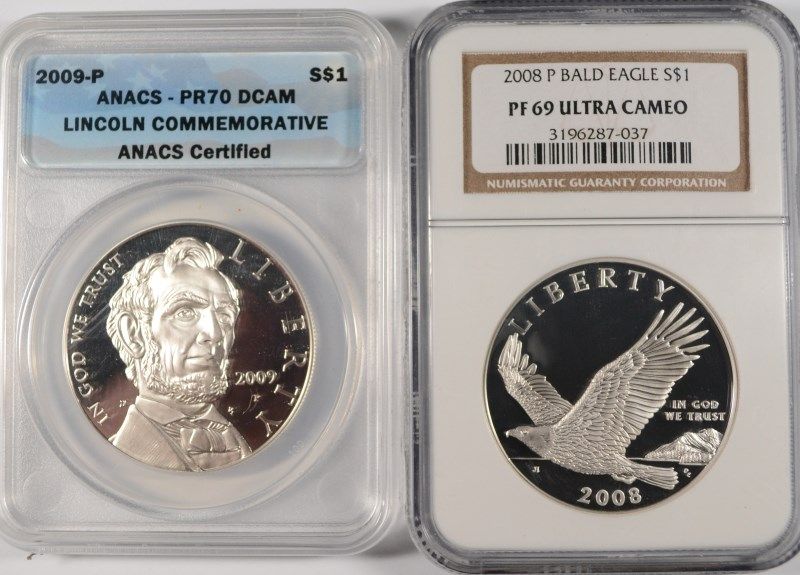 2008 BALD EAGLE NGC Pf-69 UC &2009 LINCOLN, NGC Pf 70 DCAM COMMEM SILVER DOLLARS