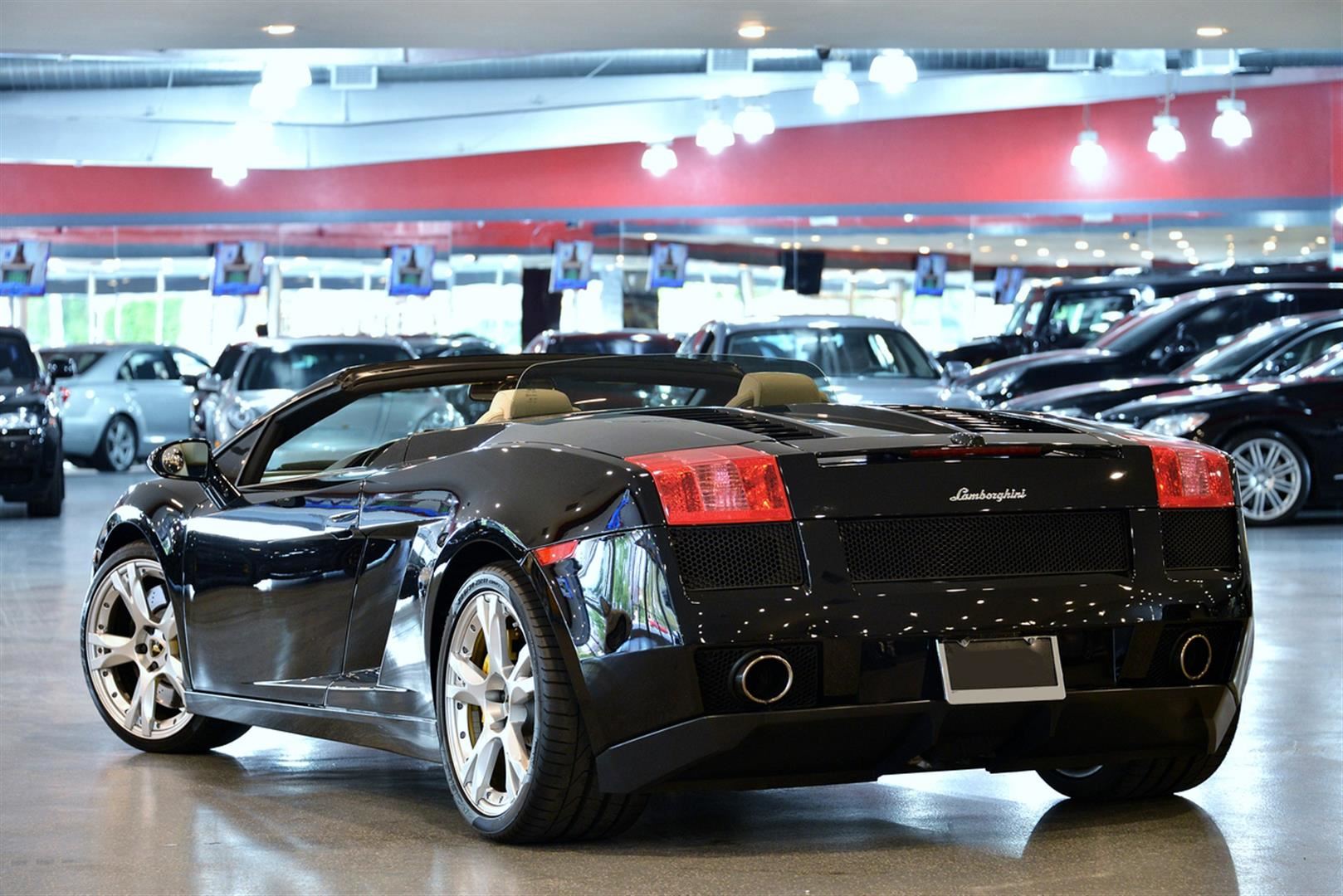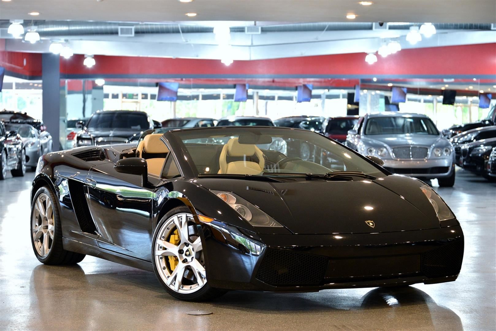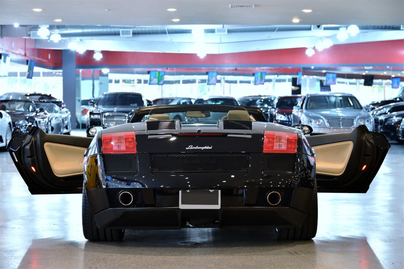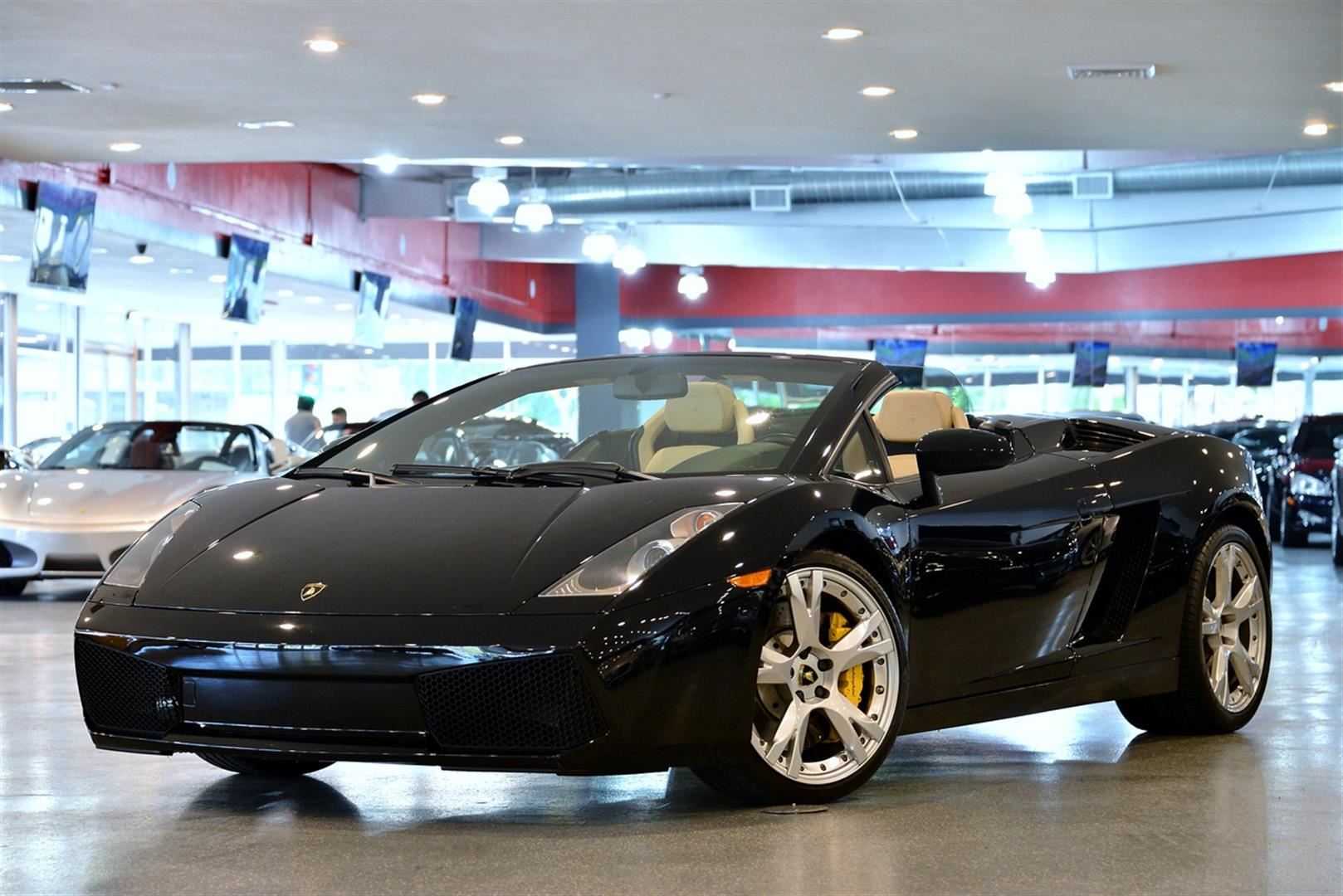 This 2008 Black Lamborghini Gallardo Convertible comes fully equipped with a 5.0L V-10 cyl engine and 6 speed automatic transmission with a all-wheel drive. It receives an average of 10 city MPG and 15 highway MPG. Vin #ZHWGU33TX8LB06137.