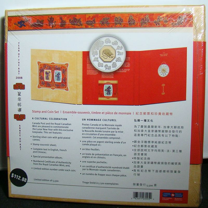 2008 Canada $15 Sterling Silver Stamp and Coin Set Year of the Rat