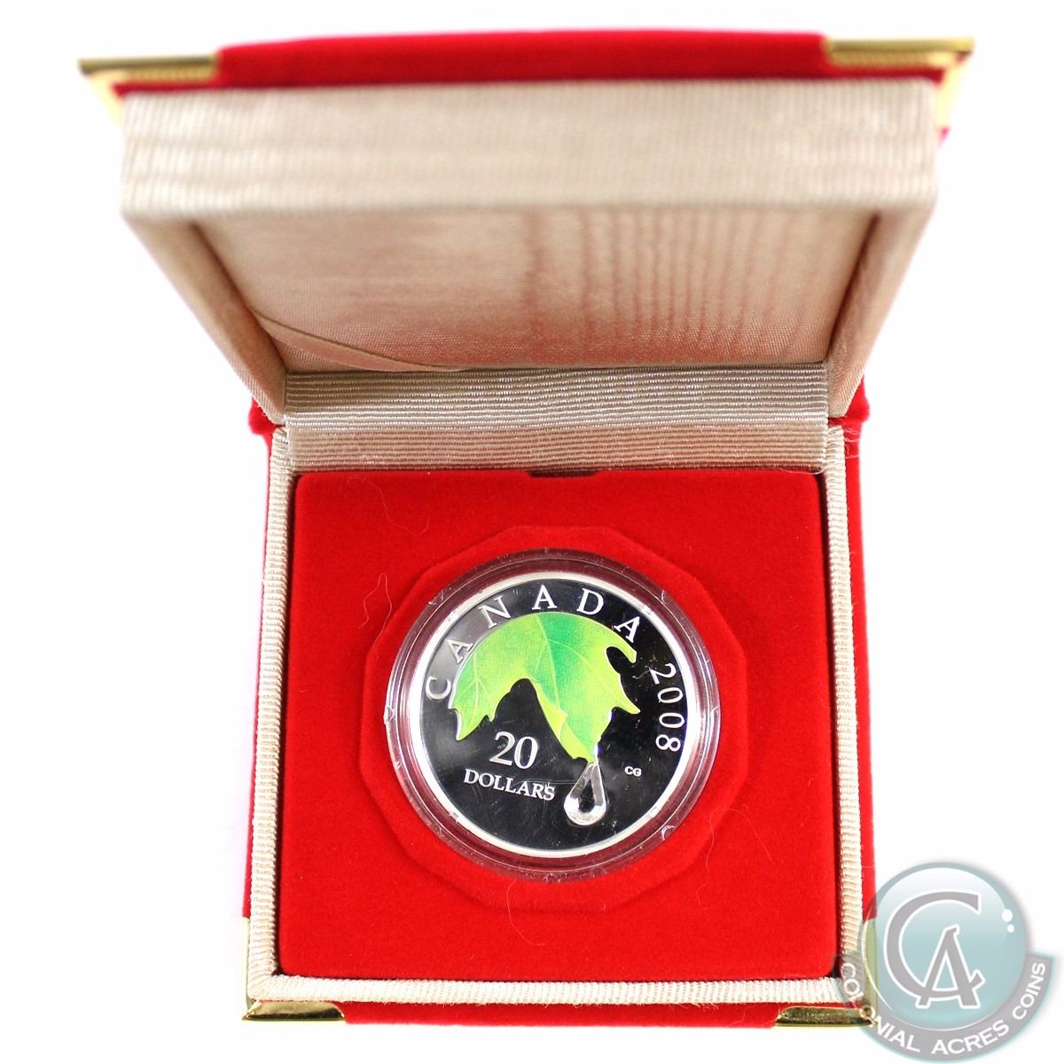 2008 Canada $20 Crystal Raindrop Fine Silver Coin Encapsulated in Red Felt RCM Display Box (Coin is lightly toned around rim & capsule is scratched) - TAX Exempt