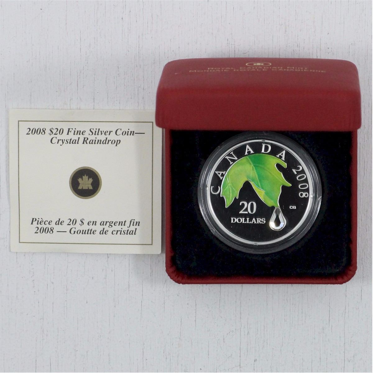 2008 Canada $20 Crystal Raindrop Fine Silver Coin (TAX Exempt).Buyers Premium will be added on all items as per our terms of sale. We accept Paypal, Credit Card, E-Transfer Payments, Cheque or Money Orders (there is an additional 3% fee for using Paypal or Credit Card). All invoices will be emailed immediately following the auction, please contact us if you would like to pay by credit card or receive a new revised lower total for mailing in payment or sending an e-transfer (3% discount). All Items Are Sold "AS IS", no returns