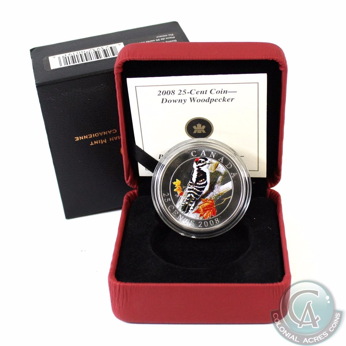 2008 Canada 25-cent Downy Woodpecker Coloured Coin (Lightly toned on obverse)