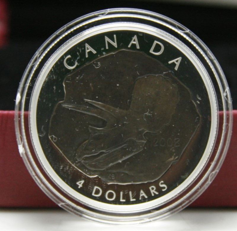 2008 Canadain $4 Fine Silver Coin - Triceratops