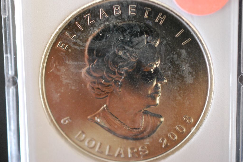 2008 Canada $5 "Maple Leaf" Foreign Coin; MCPCG Graded MS70; 9999 Fine Silver 1 Oz.