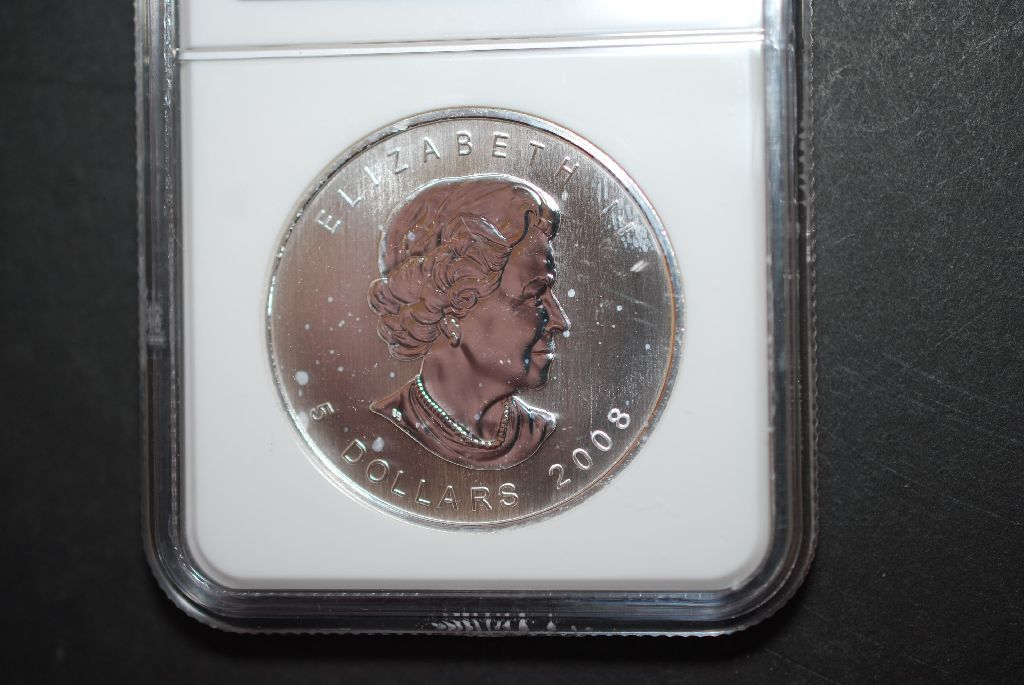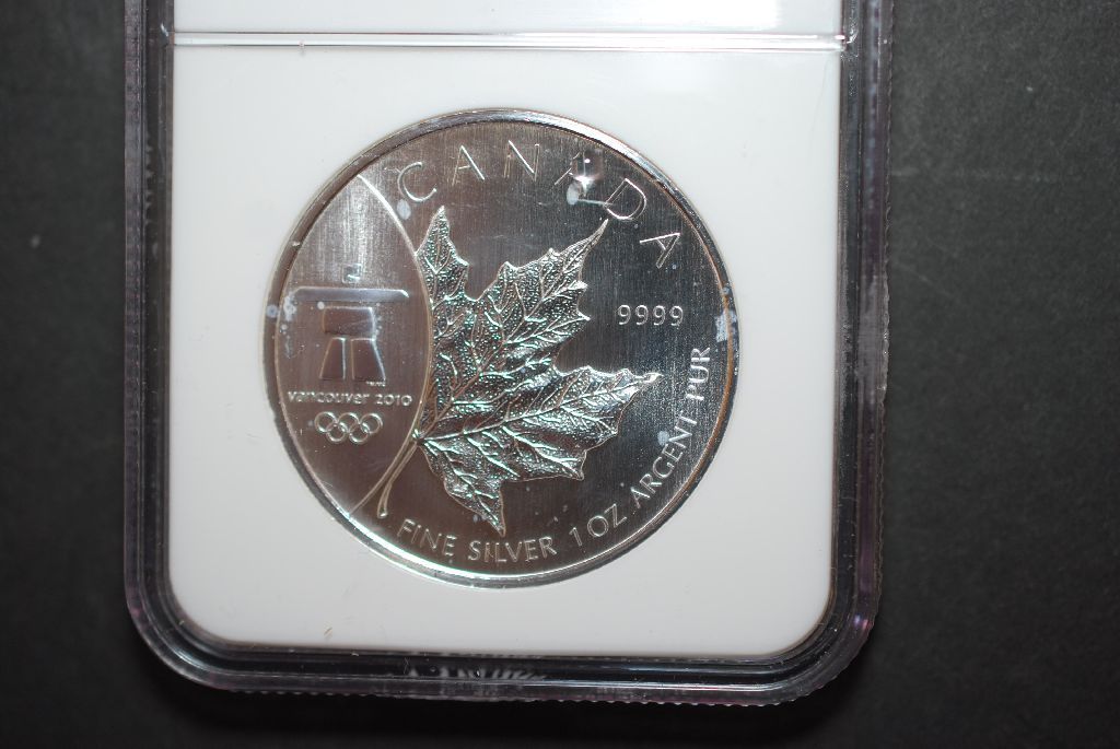 2008 Canada $5  Maple Leaf  Silver Foreign Coin 2010 Vancouver Olympics Commemorative; NGC Graded MS