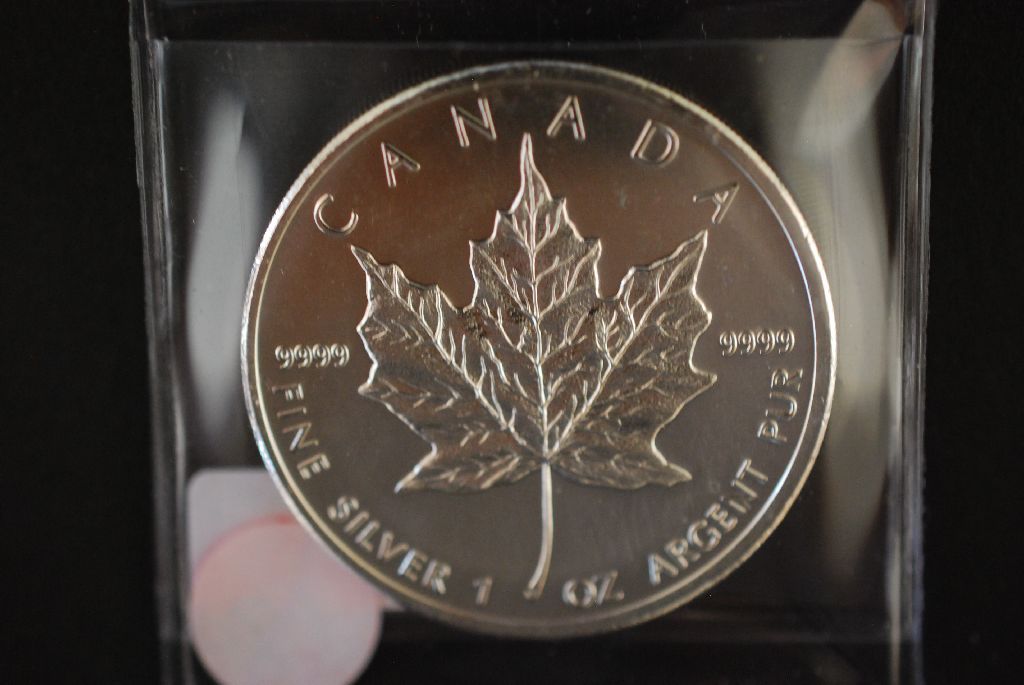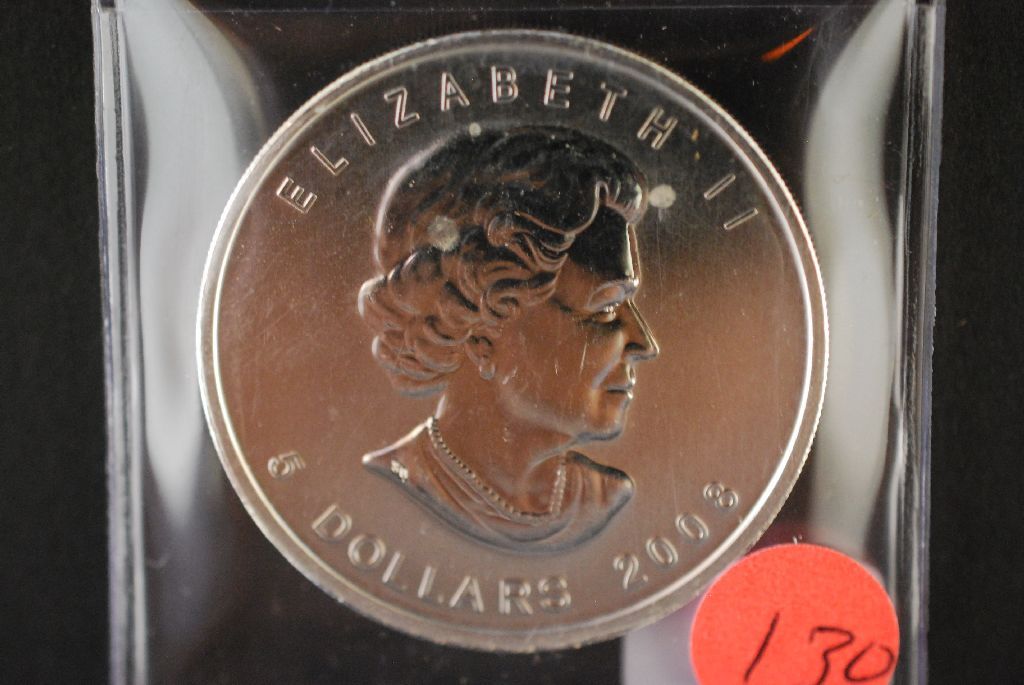 2008 Canada $5 "Mapleleaf" Foreign Coin; 9999 Fine Silver 1 Oz.