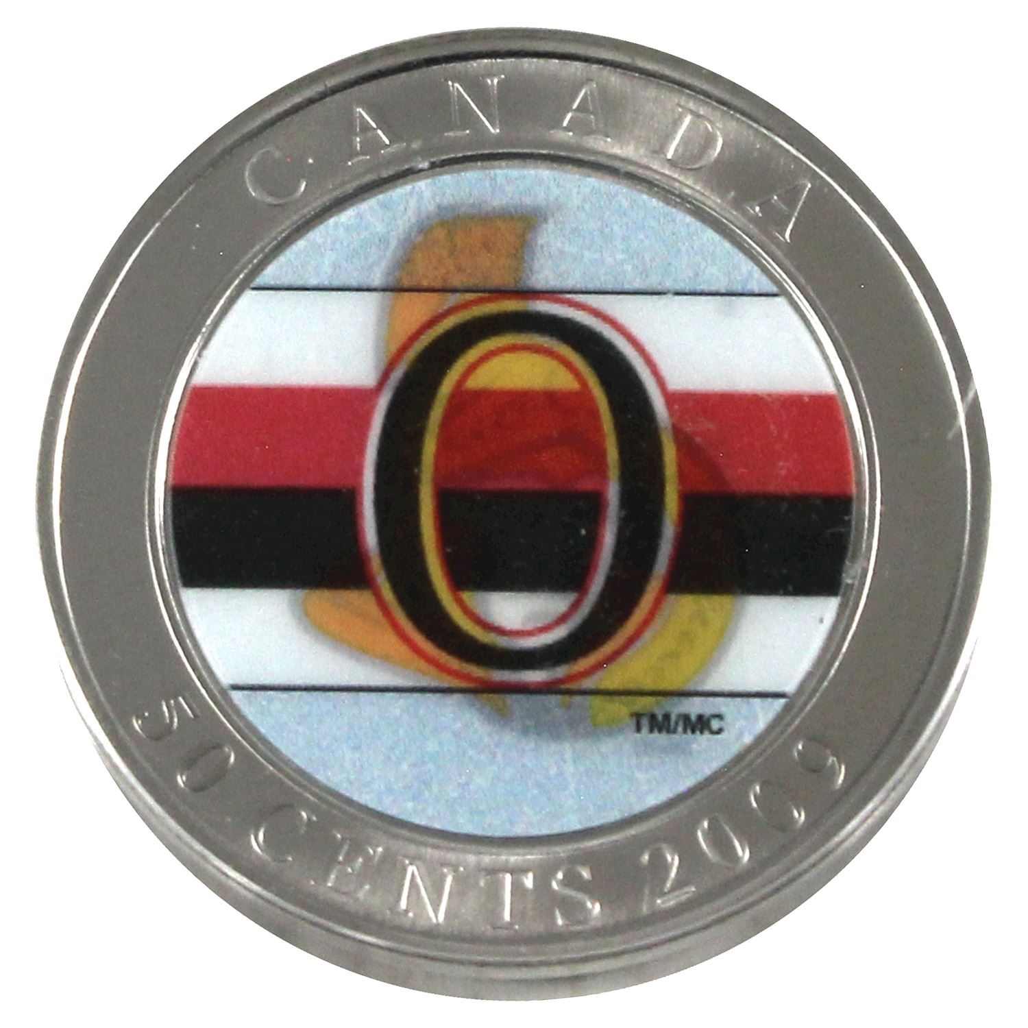 2008 Canada 50-cent Ottawa Senators NHL Coin & Puck ( coin and puck only)