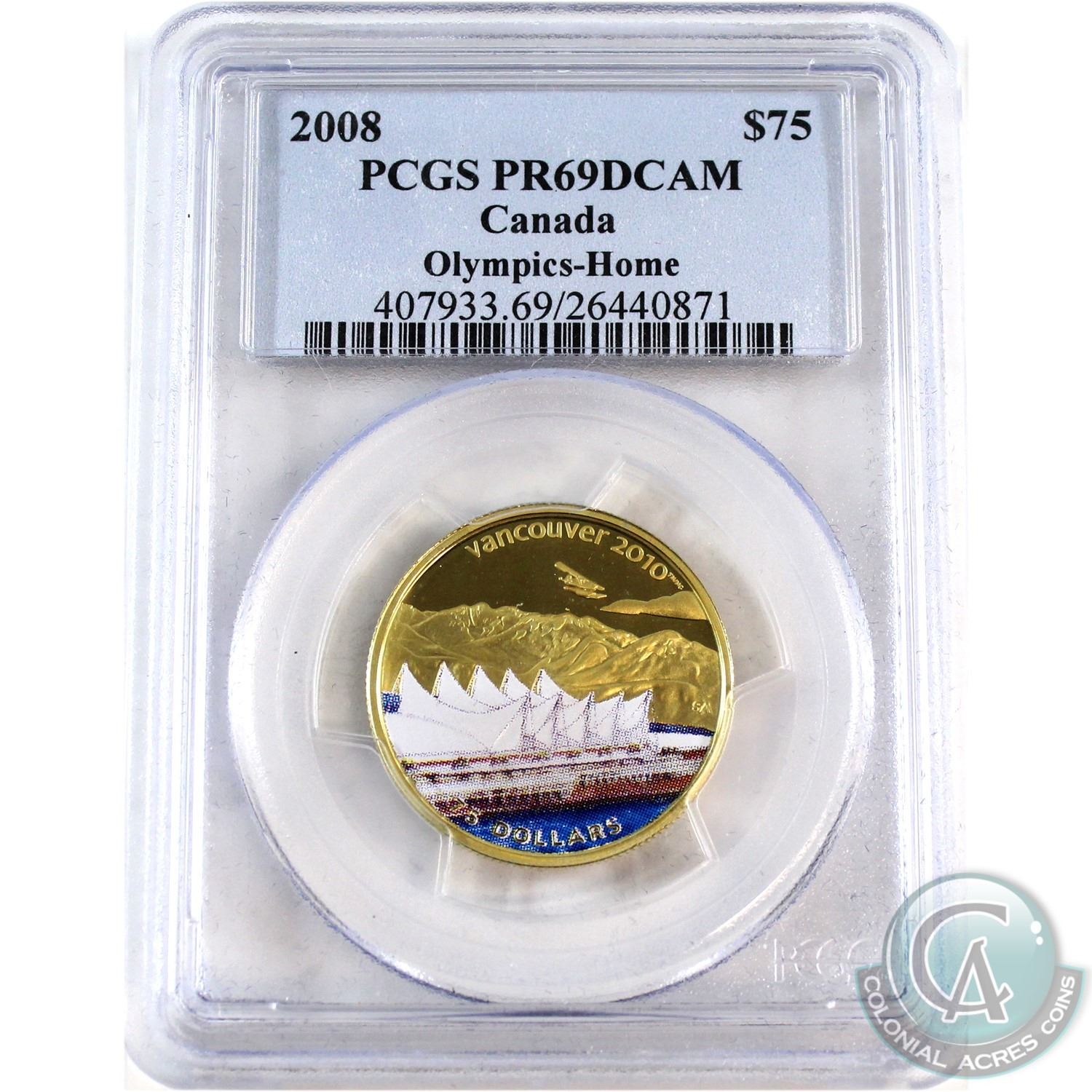 2008 Canada $75 Home of the Olympics Gold PCGS Certified PR-69 Deep Cameo. Contains 0.225oz of Pure Gold