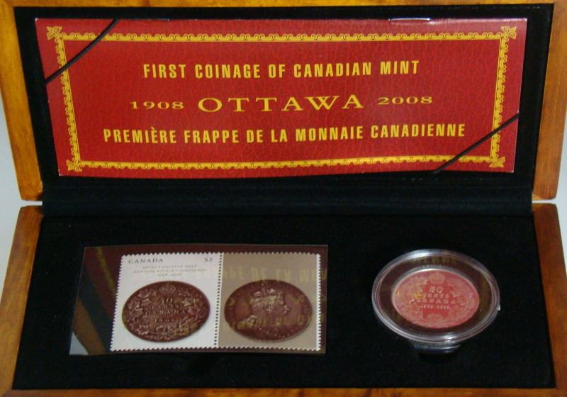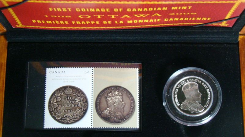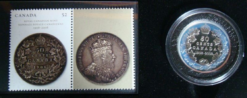 2008 Canadian Silver 50-Cent Coin & Stamp Set - First Coinage of Canadian Mint - In Collectors Box