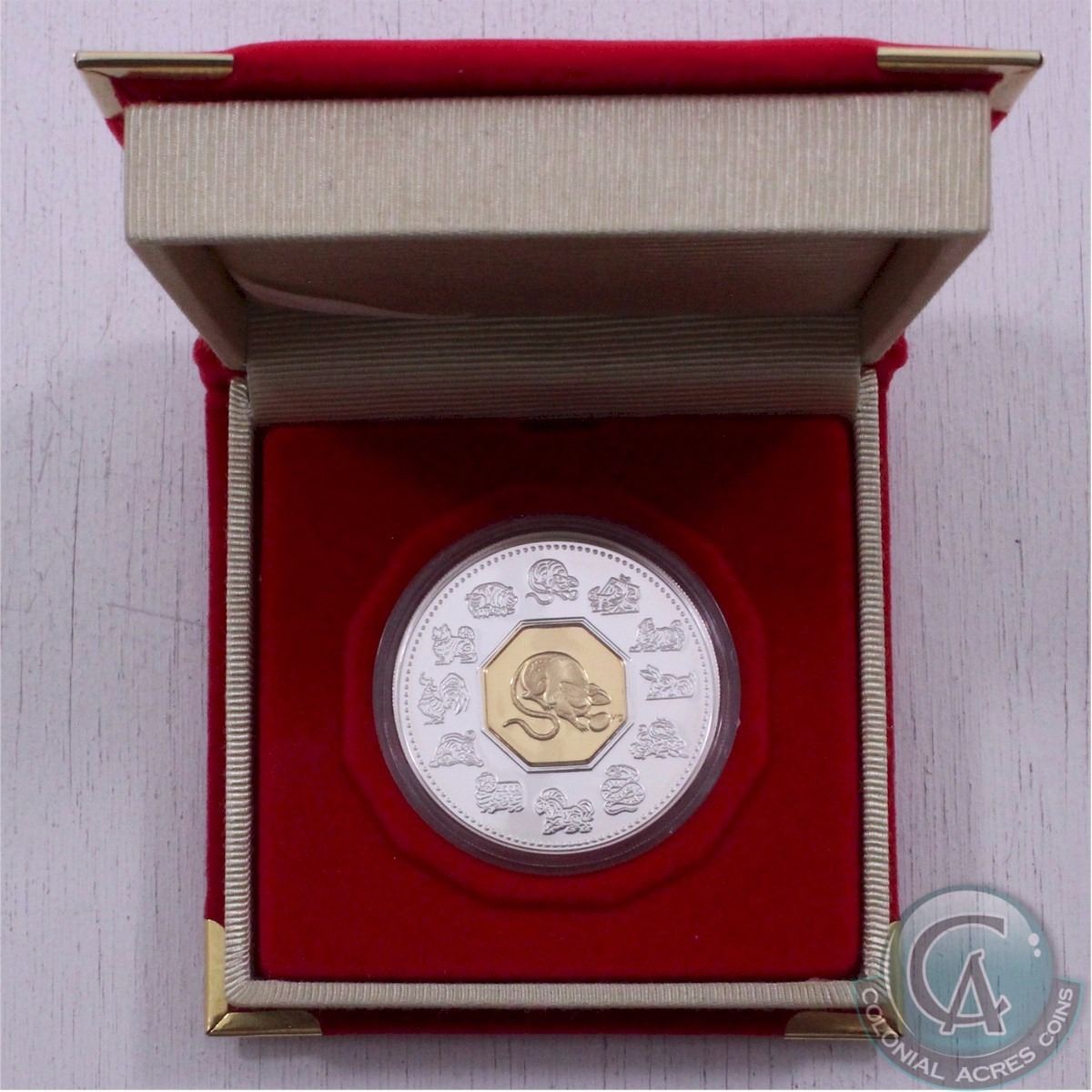 2008 Canada Lunar $15 Year of the Rat Sterling Silver and Gold Coin. Coin contains light toning, however, it comes encapsulated in a red display box.