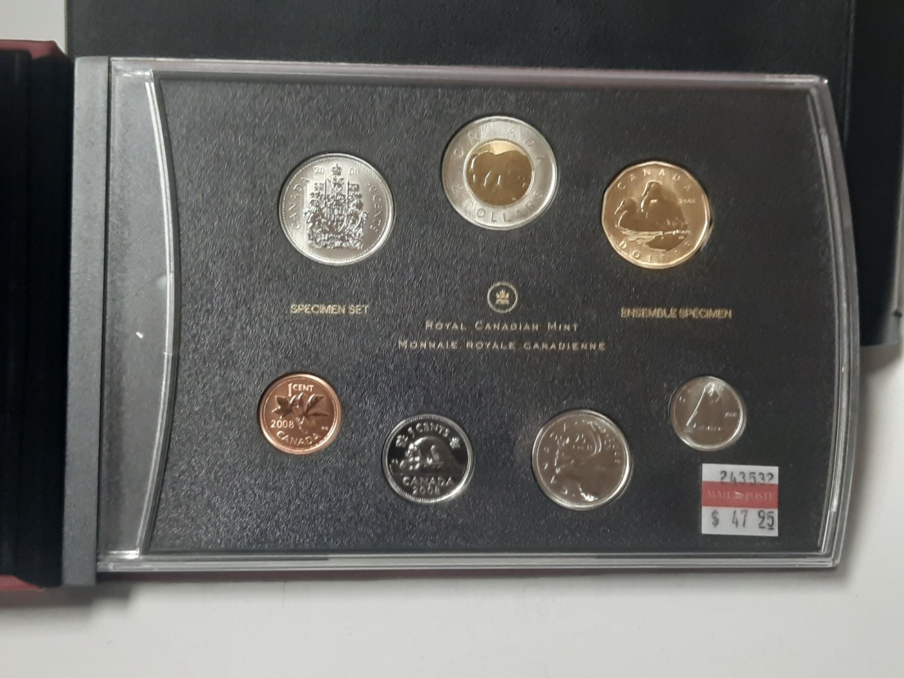 2008 Canadian Specimen Set. 7-coin set with the Loonie depicting a Common Eider Duck. This coin is only available in this set. Housed in its original Royal Canadian Mint case & box of issue, along with a Certificate of Authenticity.