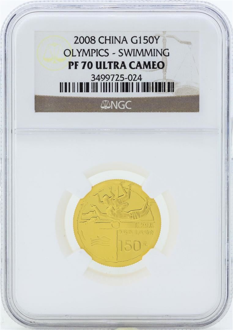 One 2008 China 150 Yuan Olympics Swimming Gold Coin NGC PF70 Ultra Cameo. NGC Certified.