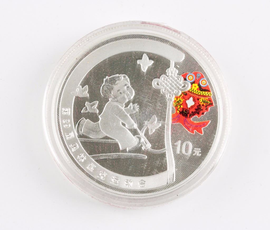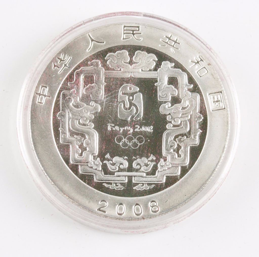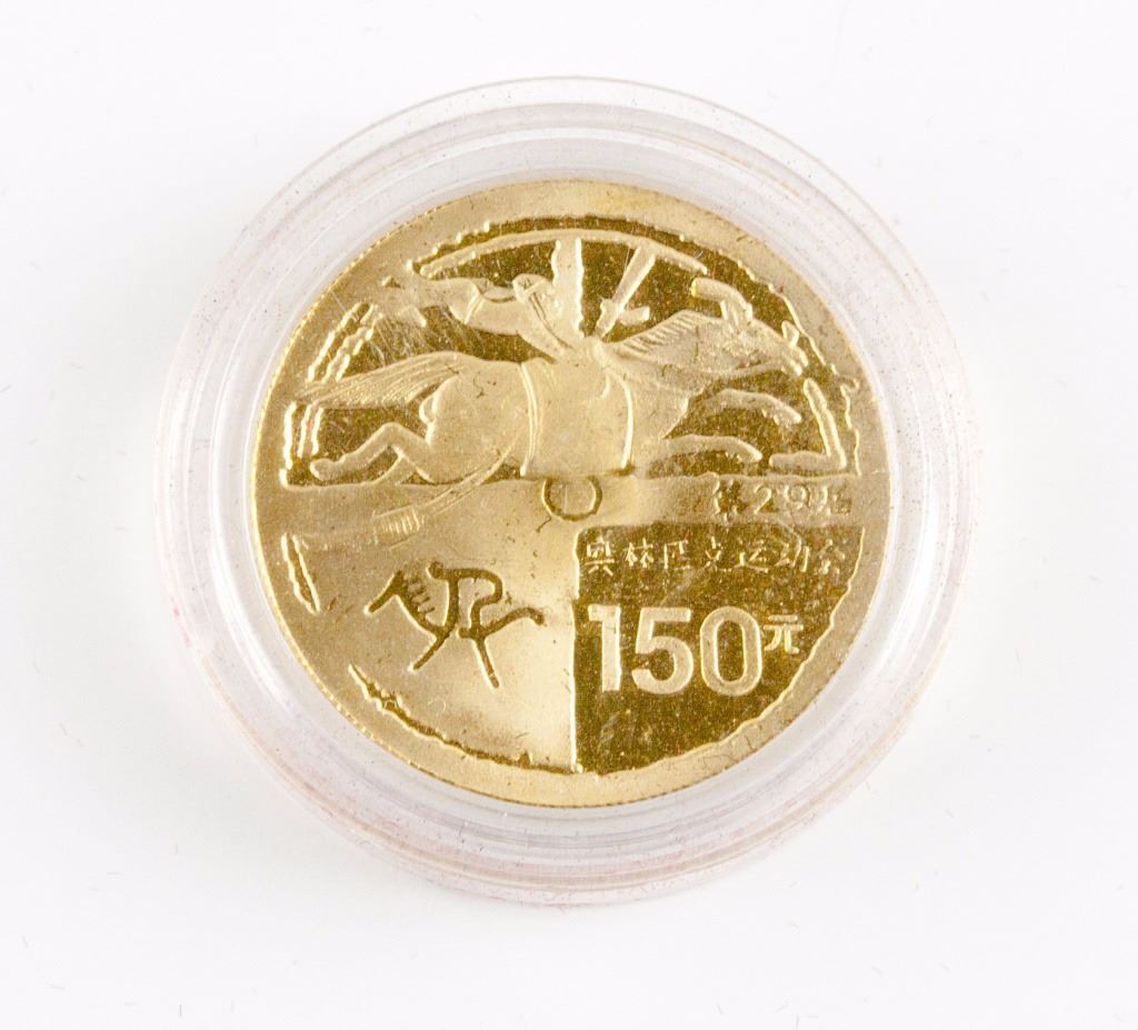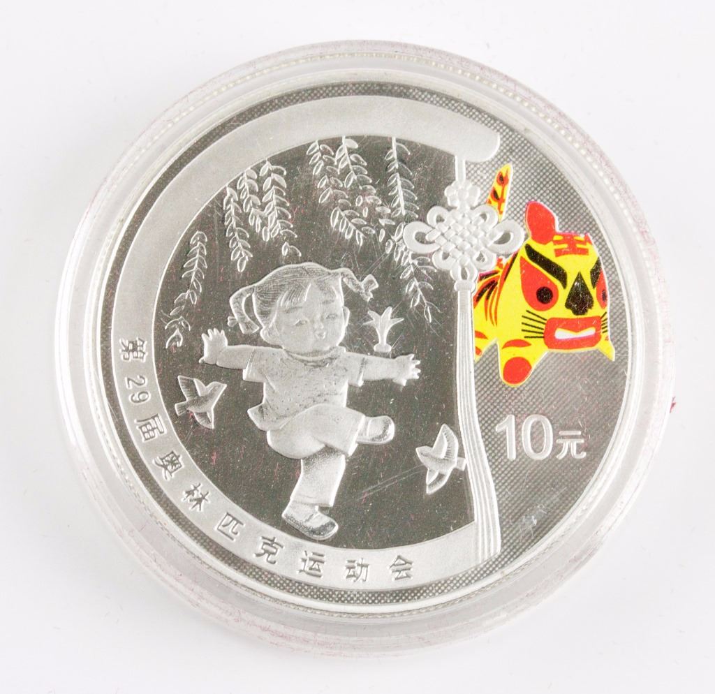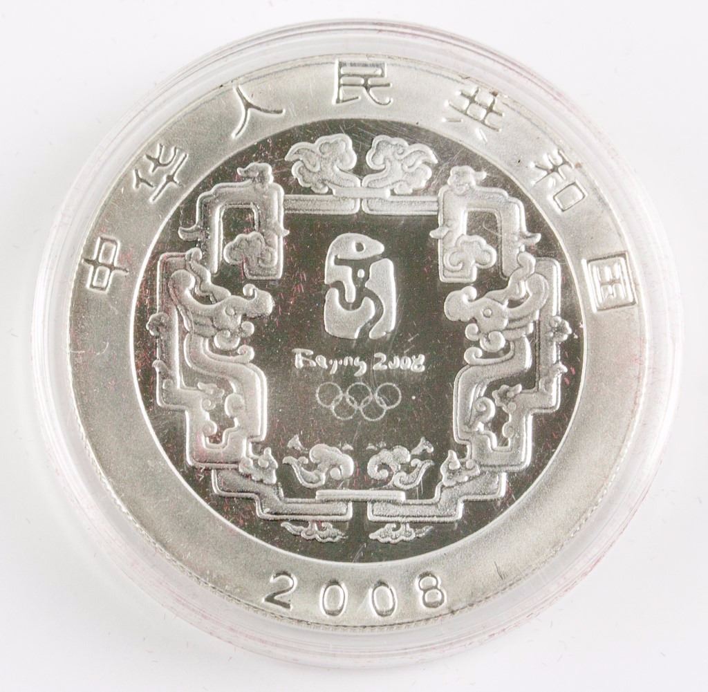 2008 China 29th Olympics Games commemorative six (6) coin set; obverse engraved children playing tradition games, lettering" Di 29 Jie Ao Lin Pi Ke Yun Dong Hui, 10 Yuan, 150 Yuan"; reverse engraved five ring, dragon totem and Beijing Olympic symbol, lettering "Zhong Hua Ren Min Gong He Guo, 2008"; with box; 15 cm x 22 cm, 500 grams