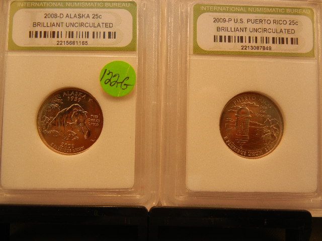2008-D & 2009-P BU UNC. State Quarters Alaska & Puerto Rico Graded By INB