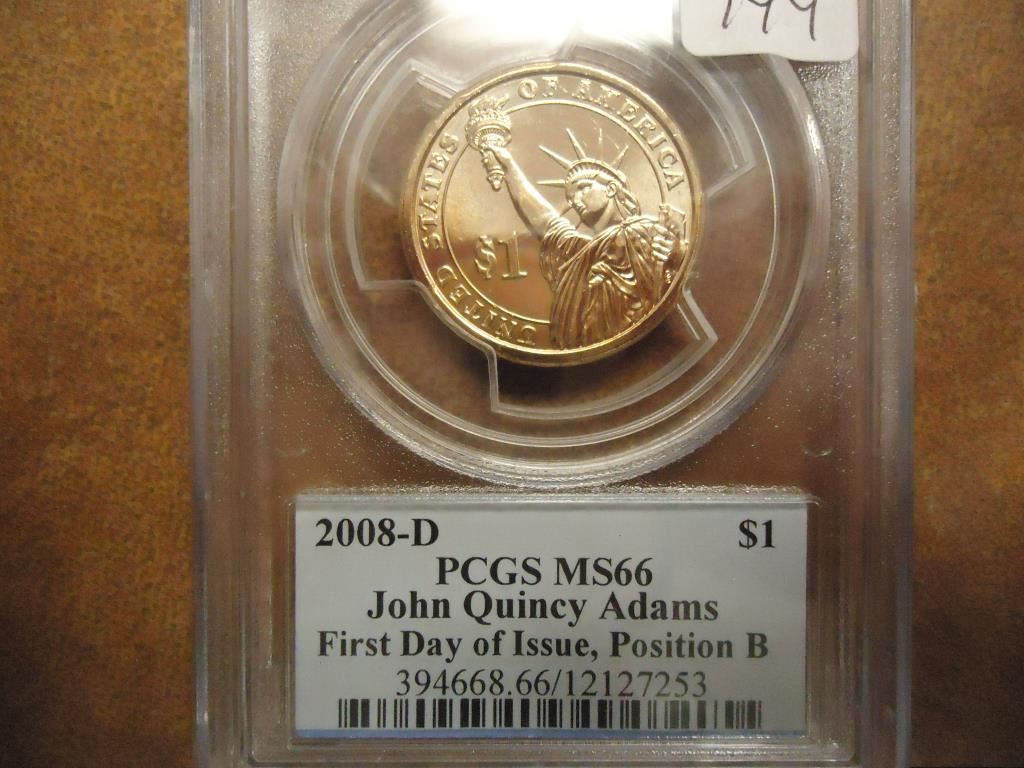 2008-D ADAMS DOLLAR PCGS MS66 POS. B 1ST DAY ISSUE