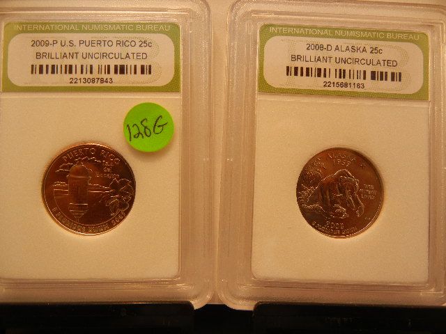 2008-D Alaska & 2009-P Puerto Rico BU UNC. State Quarters Graded By INB