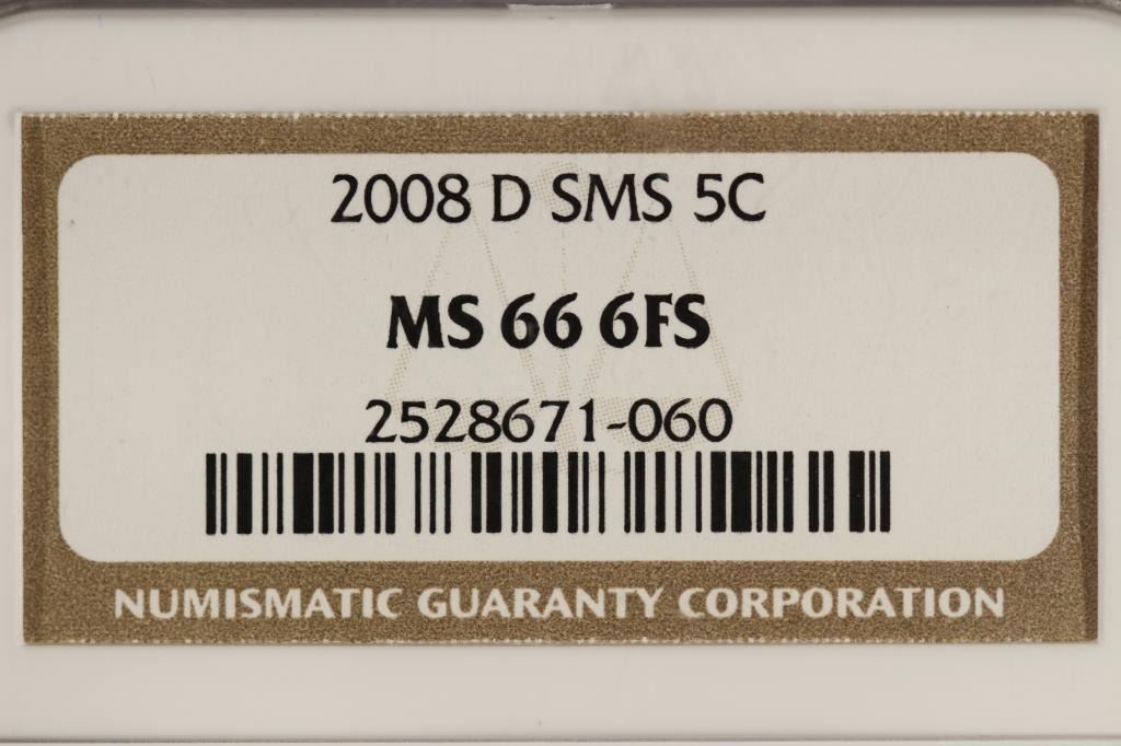 2008-D SMS JEFFERSON NICKEL NGC MS66 6FS