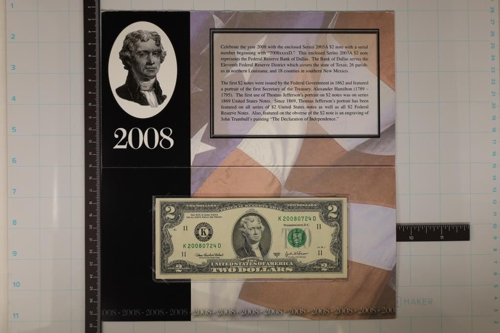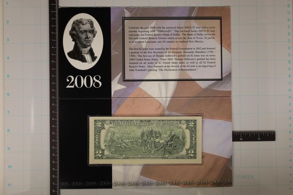 SERIAL NUMBER STARTS WITH "2008" IN ORIGINAL BEP PACKAGING