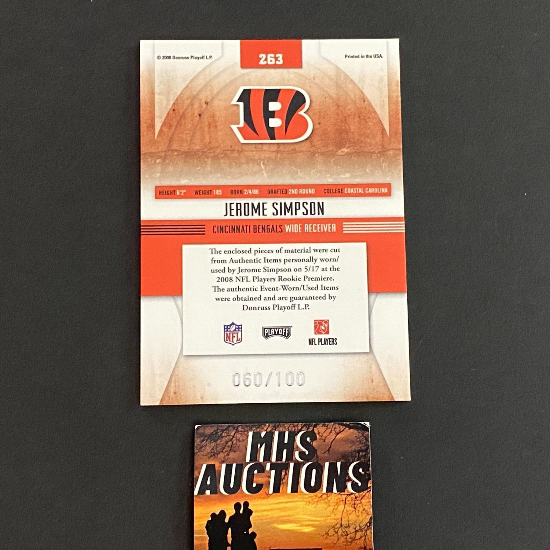 2008 DONRUSS JEROME SIMPSON PATCH CARD #060/100 ONLY 100 MADE