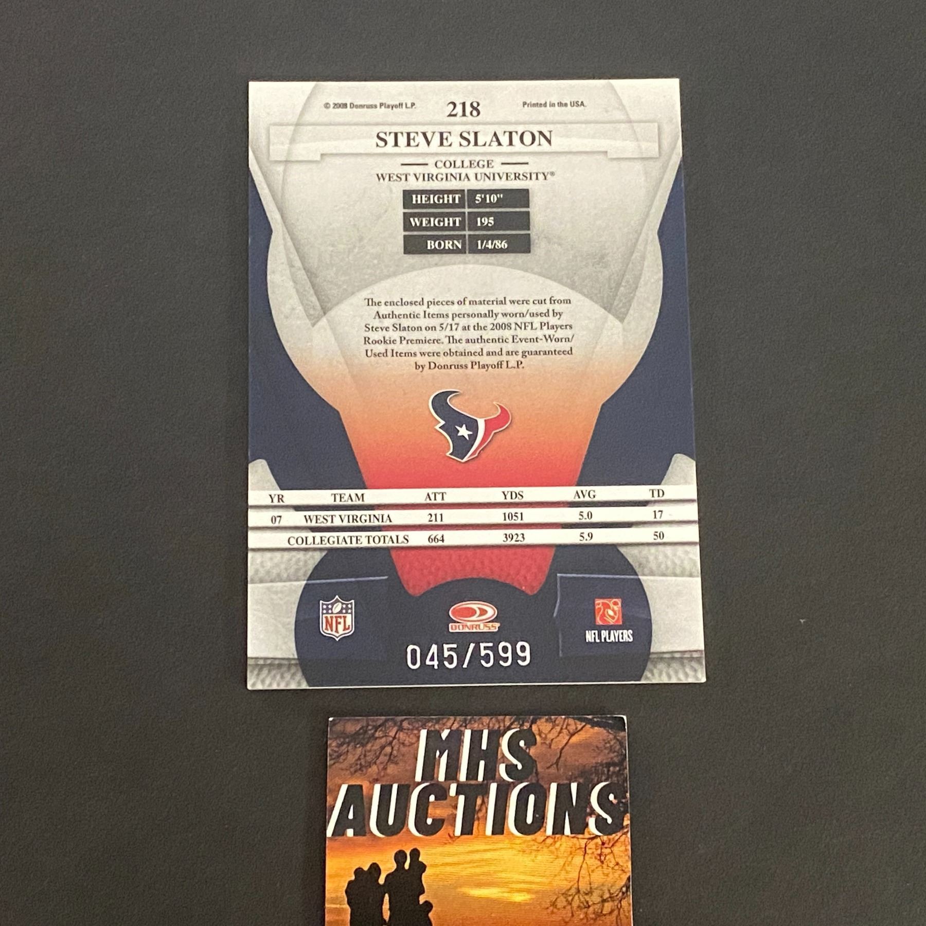 2008 DONRUSS STEVE SLATON JERSEY CARD ONLY 599 MADE #045/599