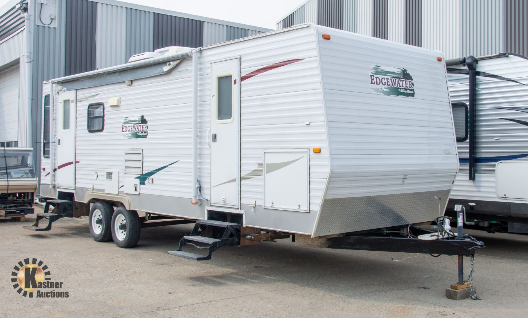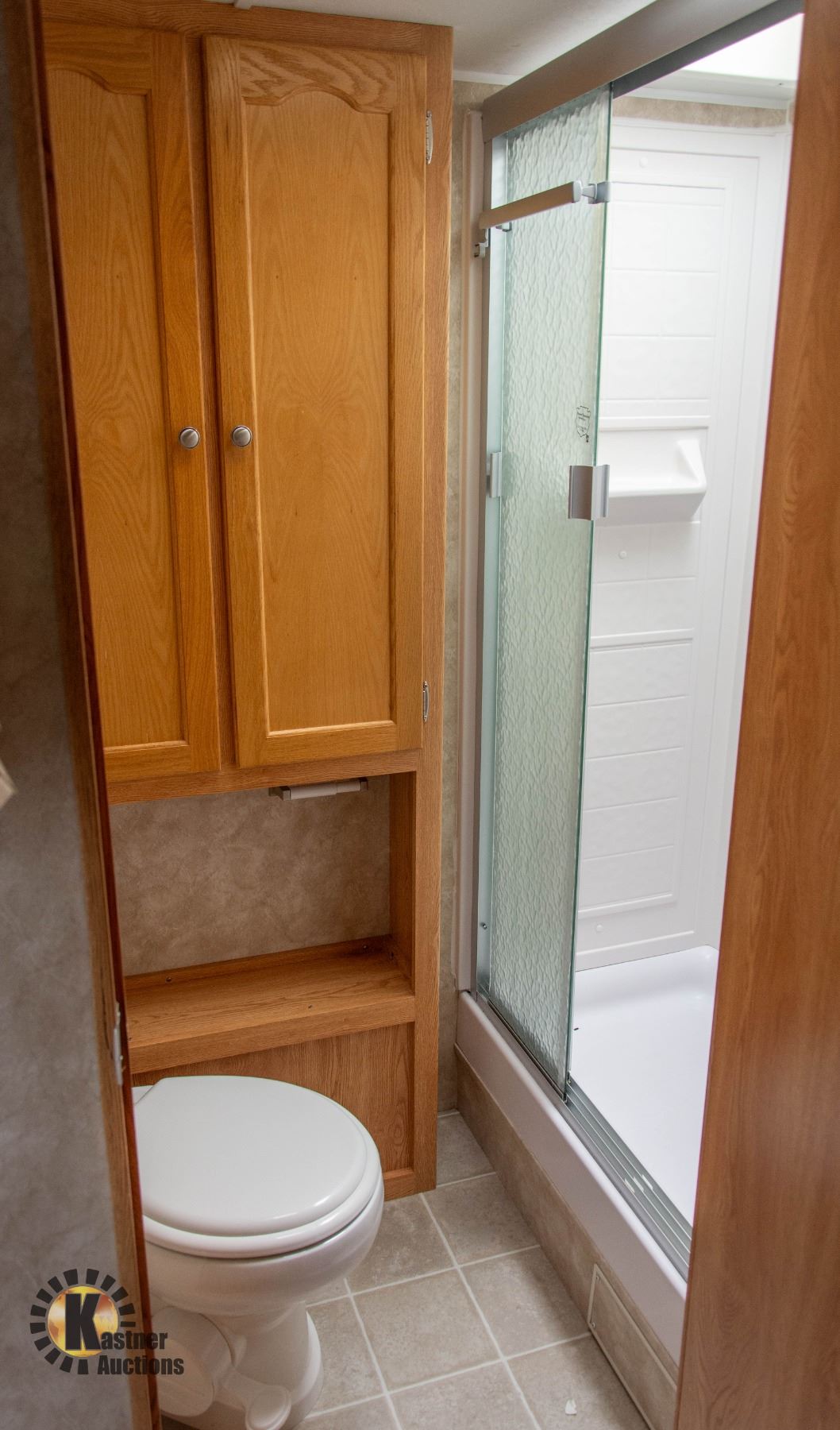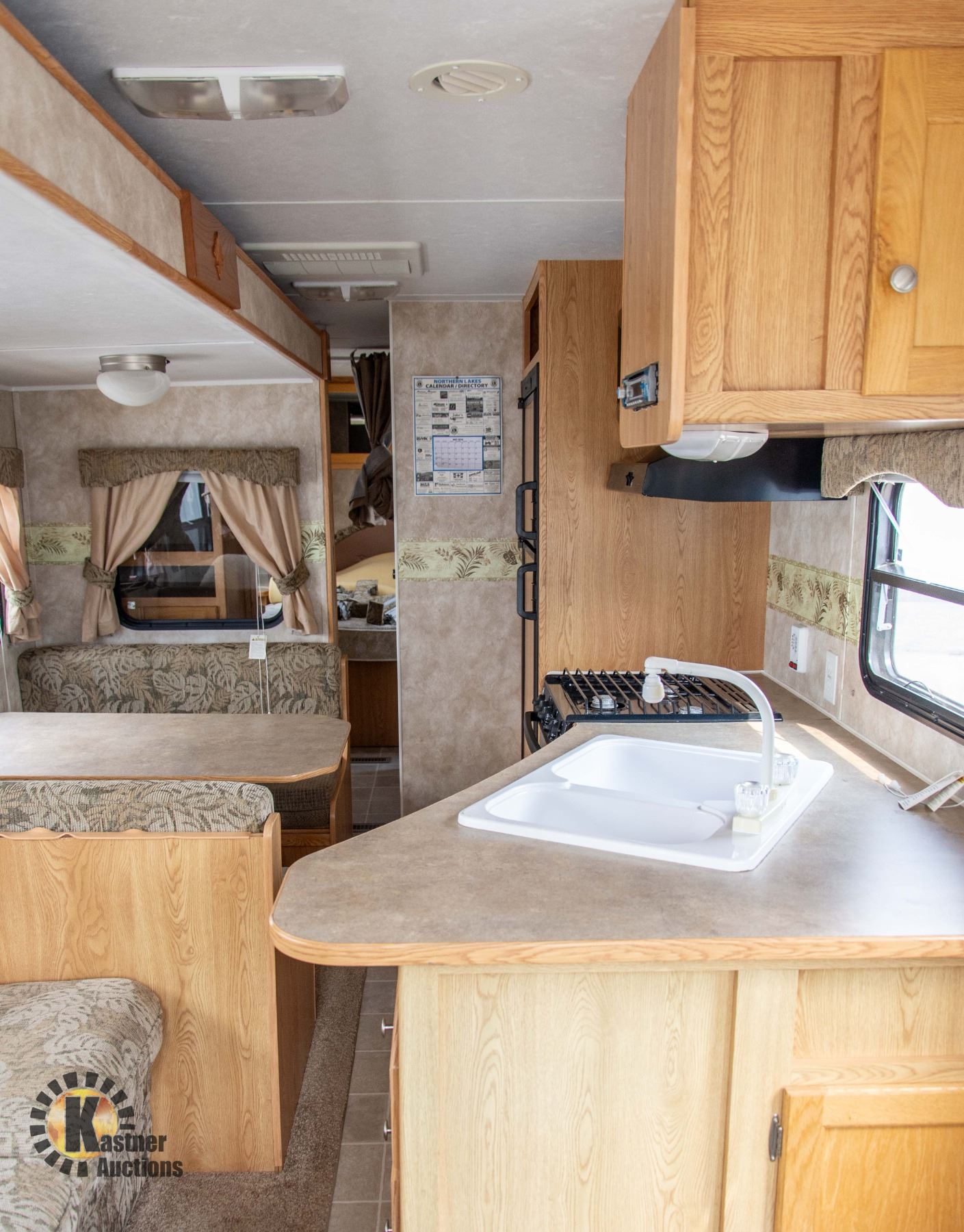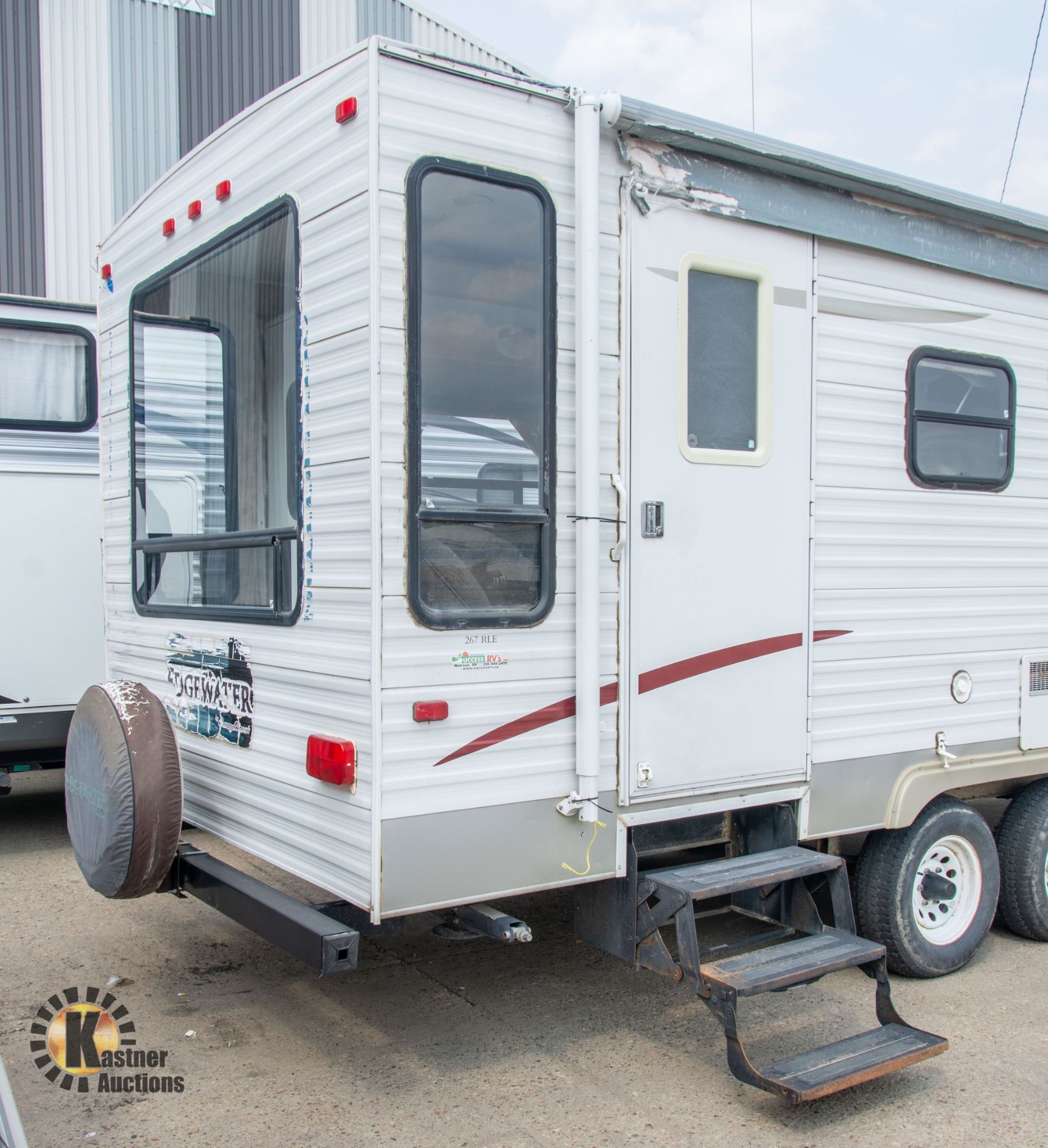 TRAILER FEATURES 4 KEYS, AWNING, QUEEN BED IN MAIN BEDROOM, PRIVATE TOILET AND FULL SHOWER, JACK AND JILL BOOTH, 3 BURNER STOVE WITH OVEN AND MICROWAVE, DOUBLE SINK, FRIDGE AND FREEZER, PULL OUT COUCH, AND TWO CHAIRS.
