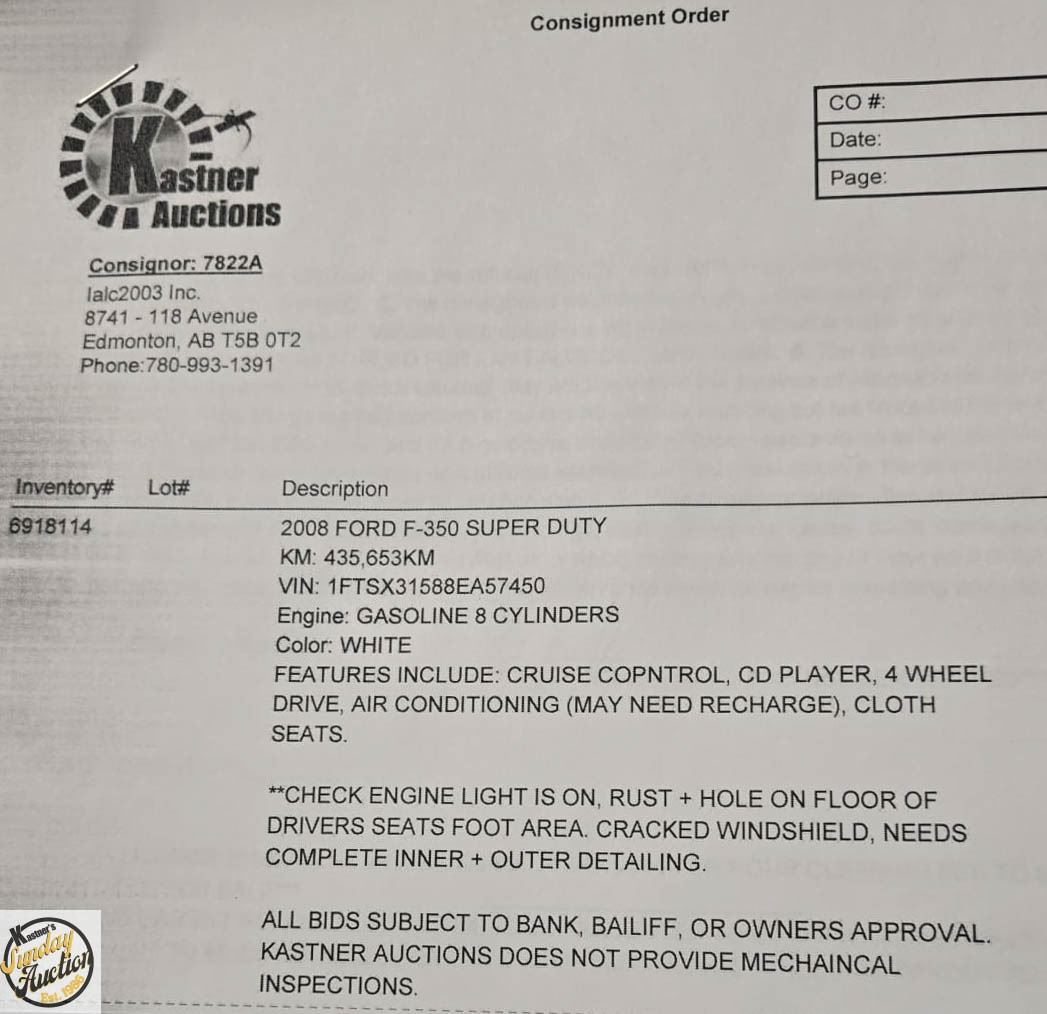 ALL BIDS SUBJECT TO BANK, BAILIFF, OR OWNERS APPROVAL. KASTNER AUCTIONS DOES NOT PROVIDE MECHAINCAL INSPECTIONS. **ALL ITEMS MUST BE REMOVED BY 5PM SATURDAY, MAY 17TH 2025. ALL REMAINING ITEMS WILL BE SUBJECT TO A $6.00 PER DAY STORAGE CHARGE. ANY ITEMS REMAINING AFTER MONDAY, JUNE 2ND 2025 WILL BE CONSIDERED FORFEITED. NO REFUNDS WILL BE ISSUED FOR FORFEITED ITEMS. TO SCHEDULE A PICK UP APPOINTMENT CLICK HERE