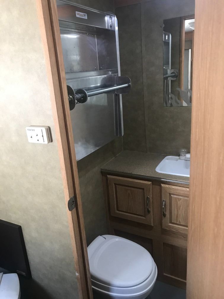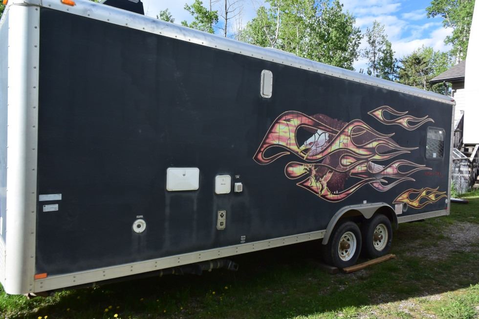 This is a great little trailer! It has a bathroom and Kitchen area up front, and a 16 foot garage in the back. This Trailer work excellent for people who want to ride ATVs and camp or even someone