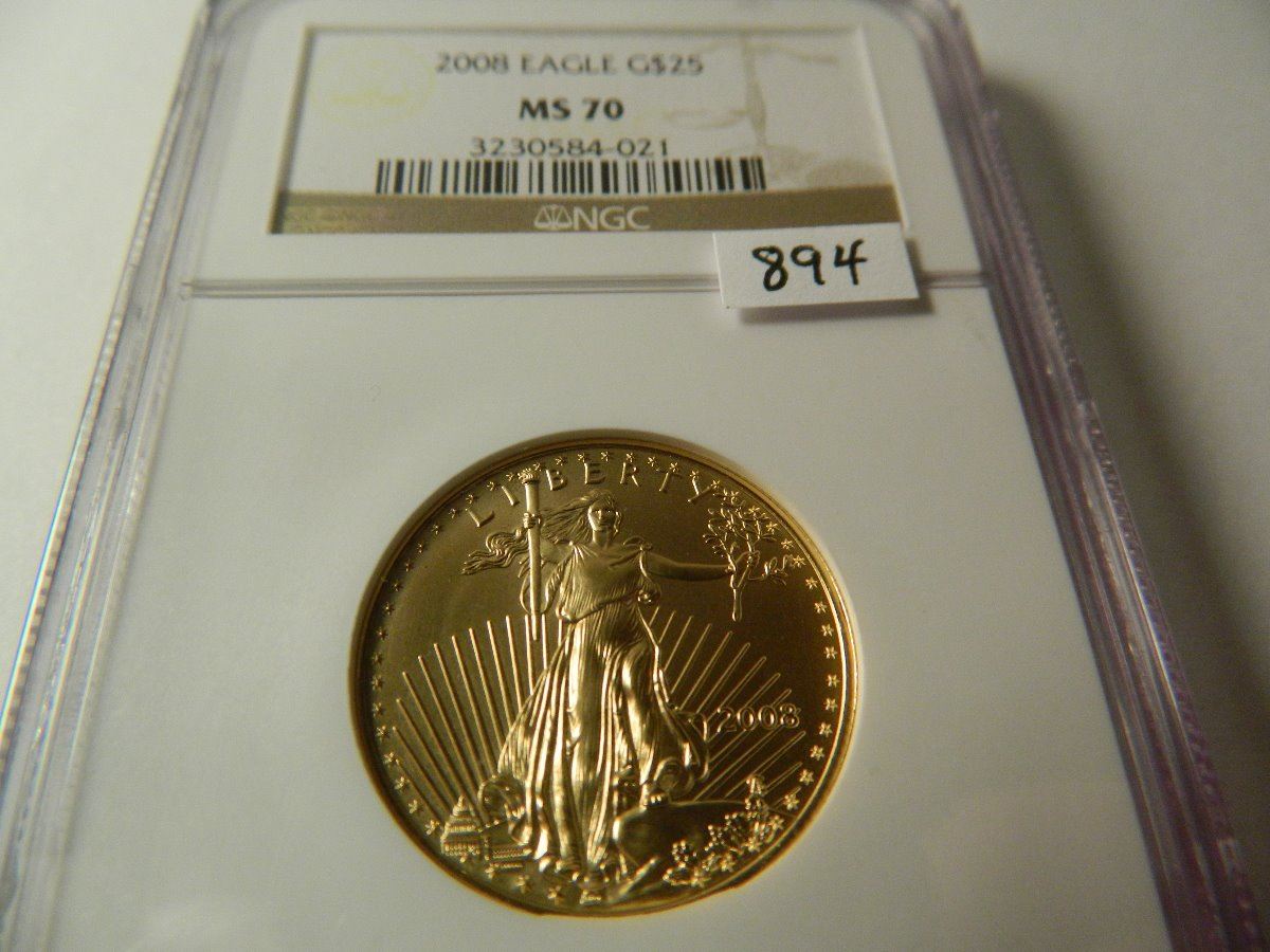 2008 Gold $25 U.S. Eagle, NGC MS70, 1/2 Ounce Fine Gold